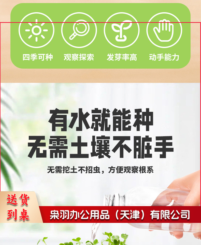 创意盆栽水培阳光种植房儿童玩具科学实验套装植物生长观察盒diy基础款(无字盒子/毛毡、种子)