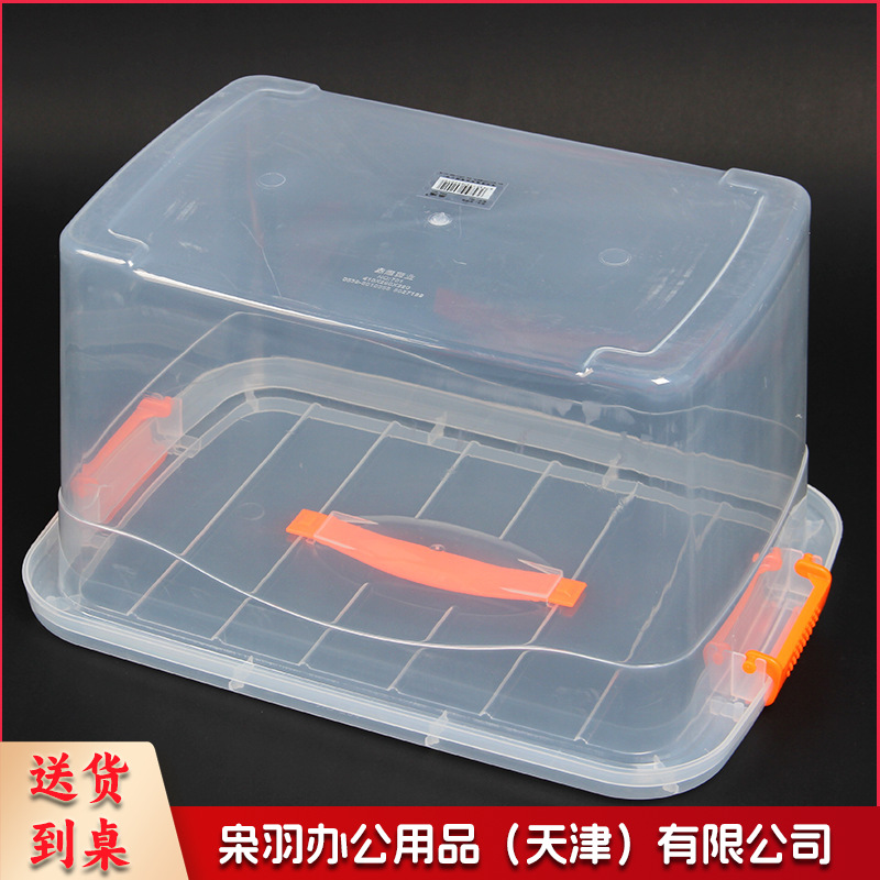pp食品级加厚手提大号保鲜盒 塑料 透明长方形冰箱密封收纳盒带盖(手提款0802【34*24.3*20.7】)2个起拍