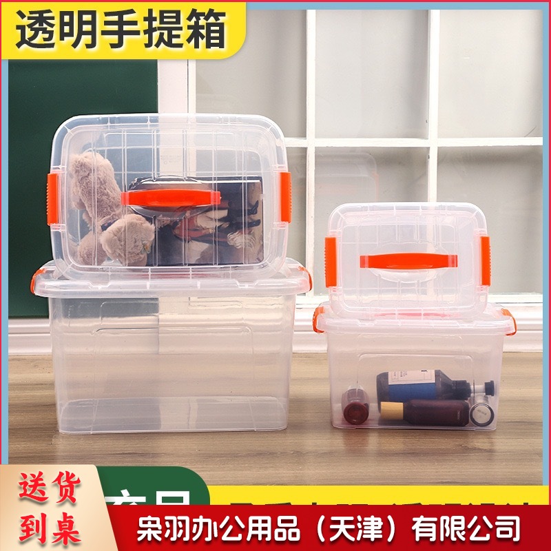 pp食品级加厚手提大号保鲜盒 塑料 透明长方形冰箱密封收纳盒带盖(手提款8203【40*28*22】2个起拍
