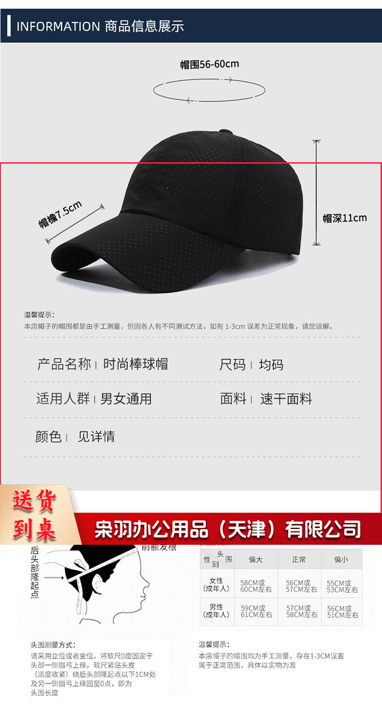 帽子男士速干棒球帽网孔透气防晒女遮阳帽可定印图案logo