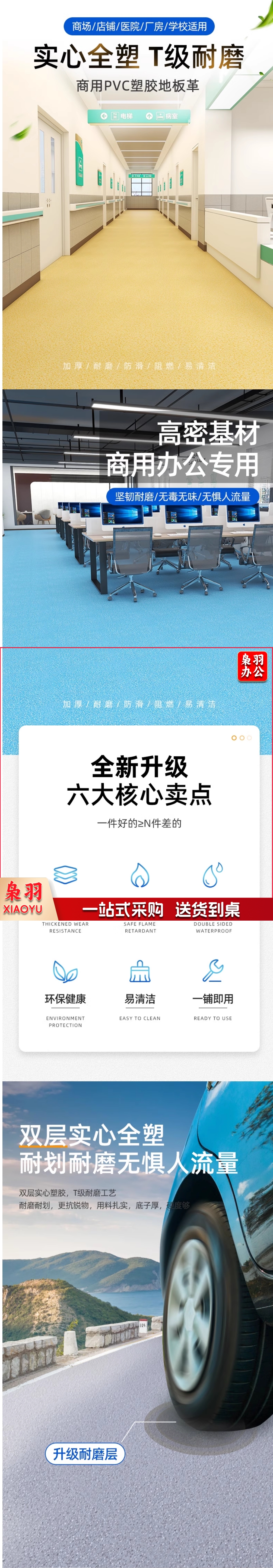 商用PVC塑胶地板革加厚耐磨防火阻燃防水泥地直接铺家用地胶地垫2*5米 2.0厚025