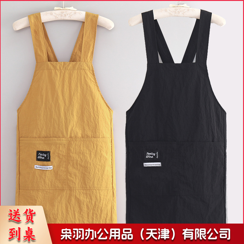 新款交叉背带简约防泼水围裙男女同款家务厨房做饭防油污工作服塔丝隆 黑色10件起订
