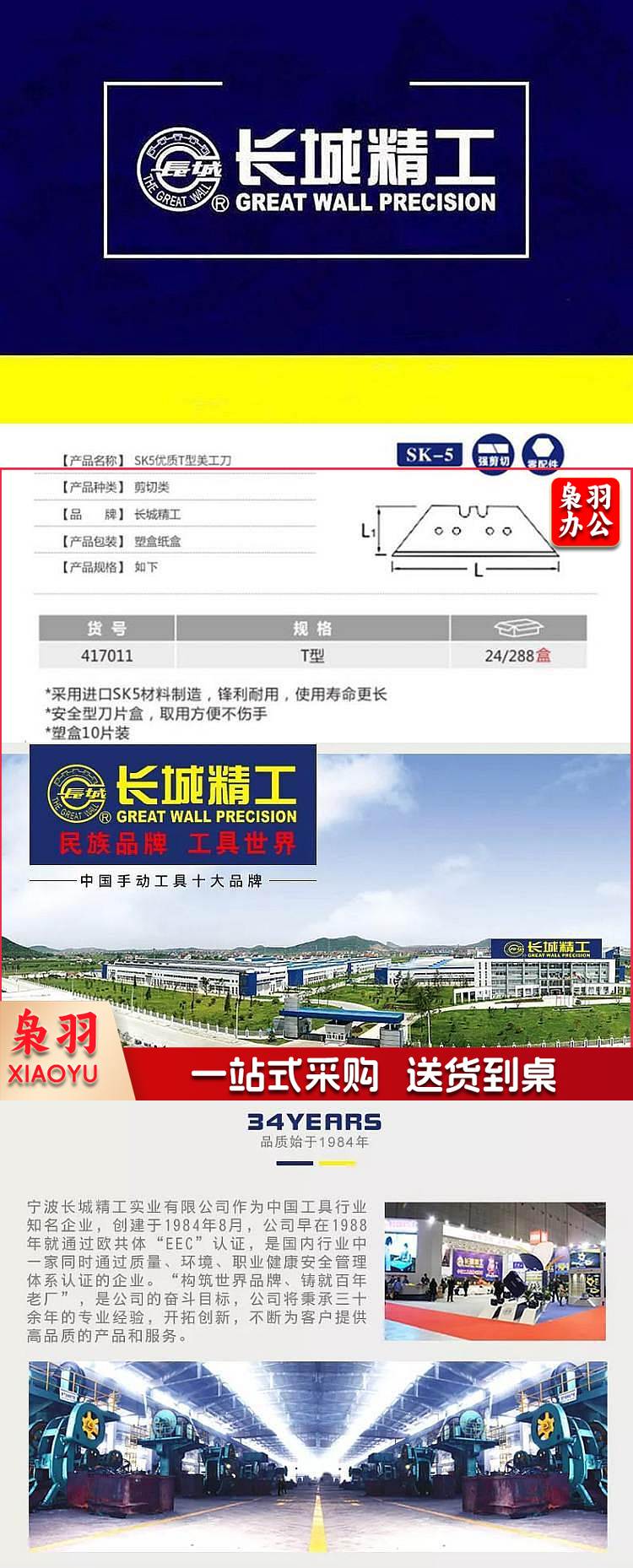 长城精工417011T型SK5优质美工刀刀片(盒)