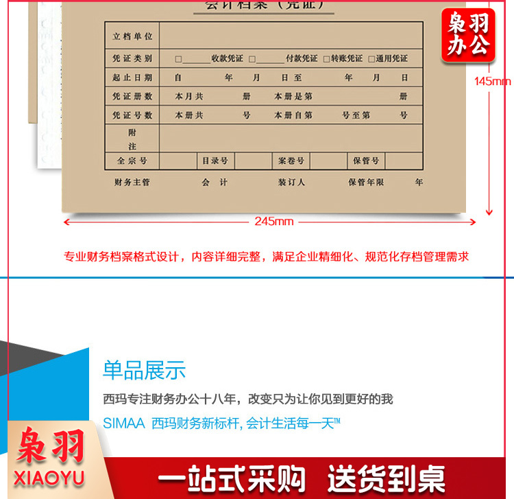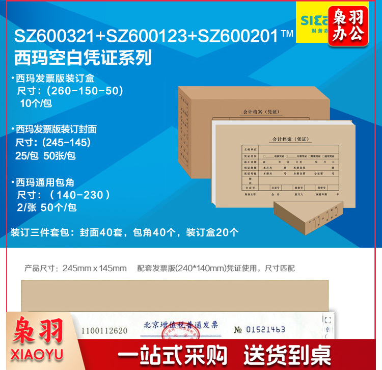 西玛 SZ600123 发票版凭证装订封面 245*145mm 25套/包 单位:包 褐色
