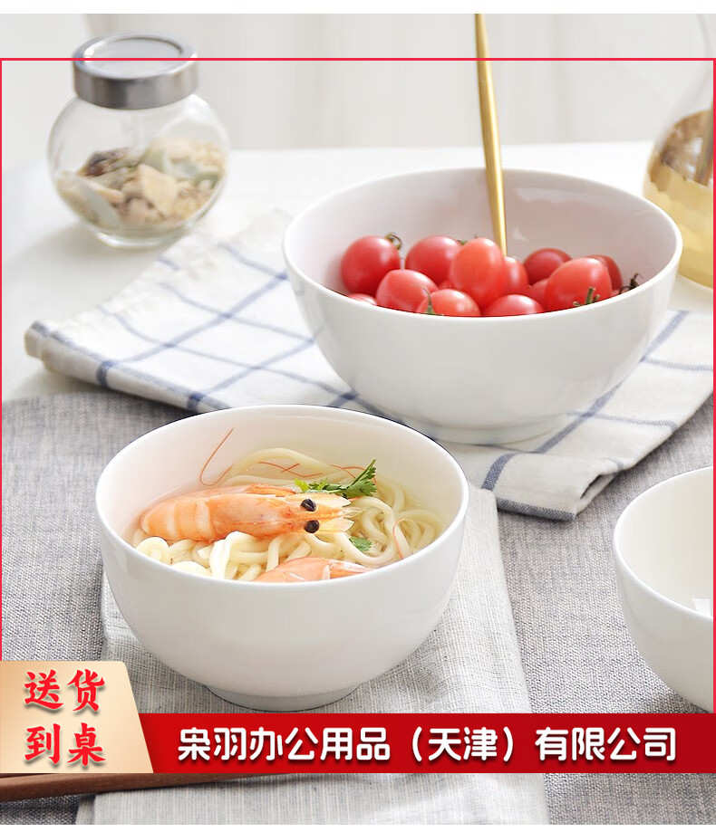 瓷侠客北欧简约陶瓷饭碗家用纯白吃米饭碗骨瓷大号面碗可微波纯色小汤碗 6英寸标准面碗【1个】
