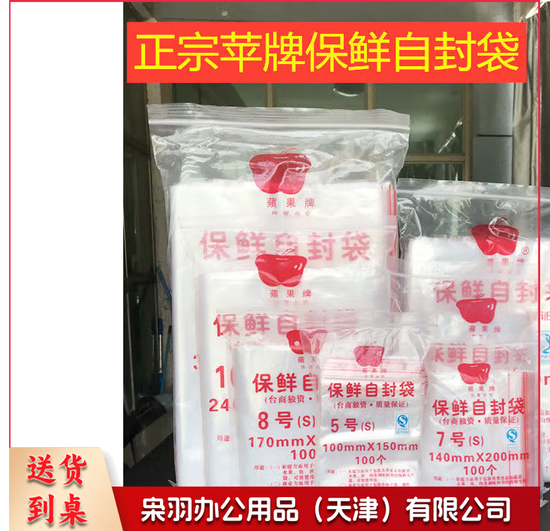 苹果牌自封袋加厚透明密实袋一次性塑料封口袋pe食品包装袋分装袋 7号【14cmx20cm】 100个/袋.