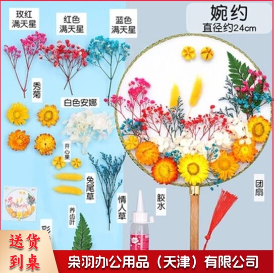 干花团扇diy材料包永生花中国风扇子幼儿园手工创意
