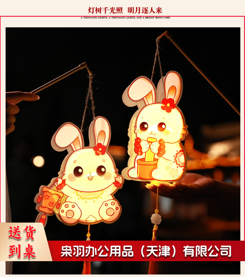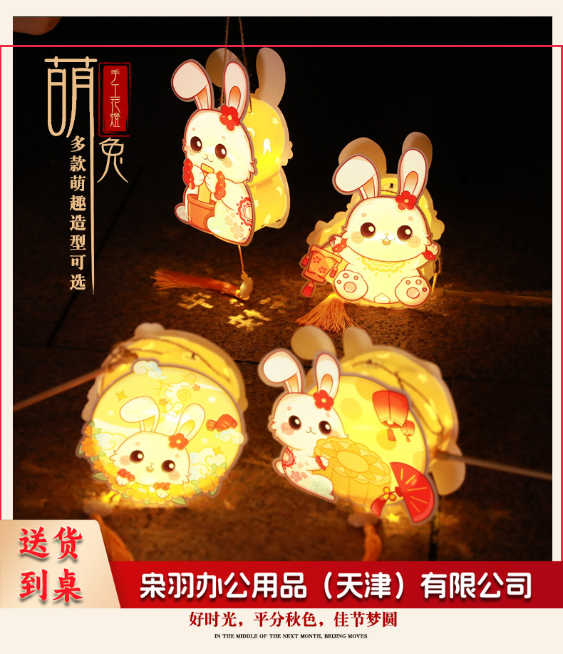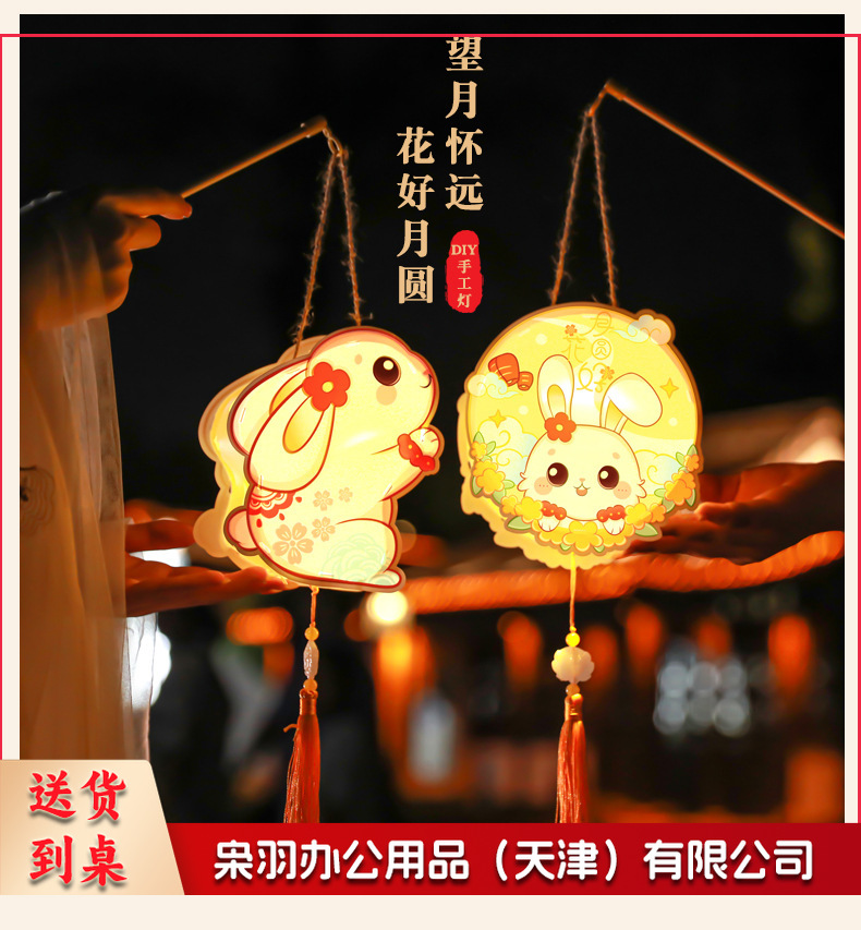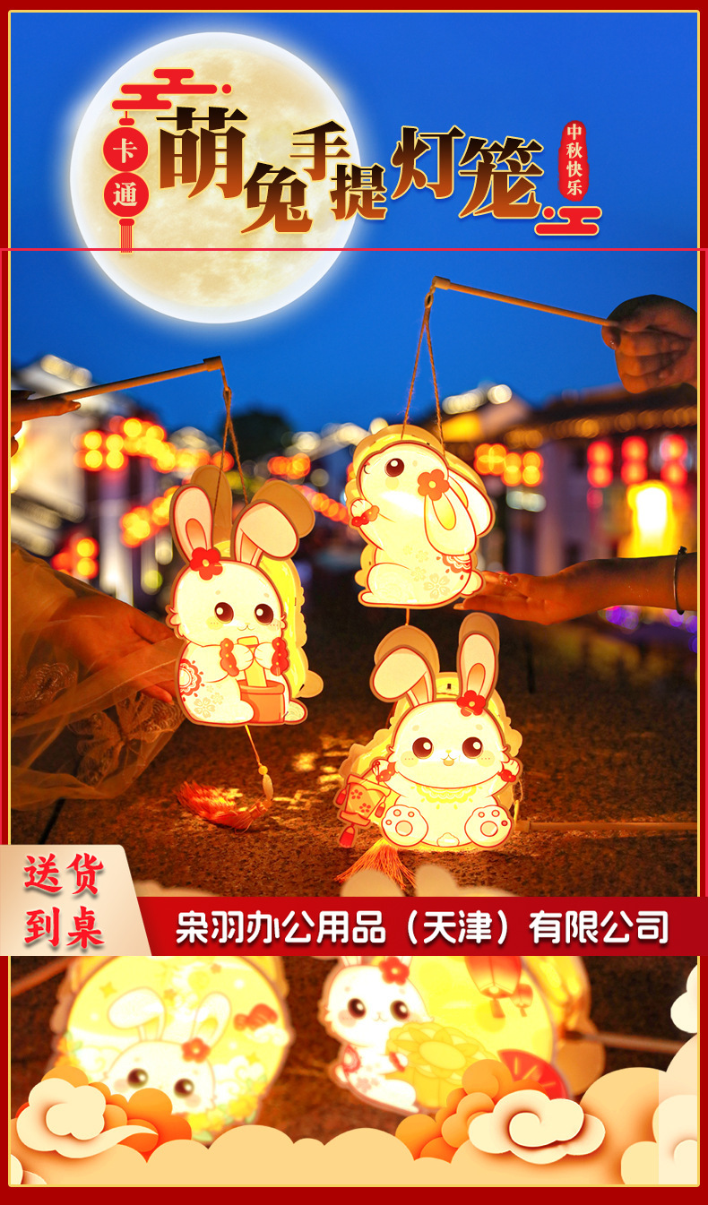 中秋节躺躺兔花环兔灯笼 卡通发光兔子pvc手提花灯 儿童手工灯diy材料 古风灯