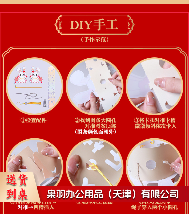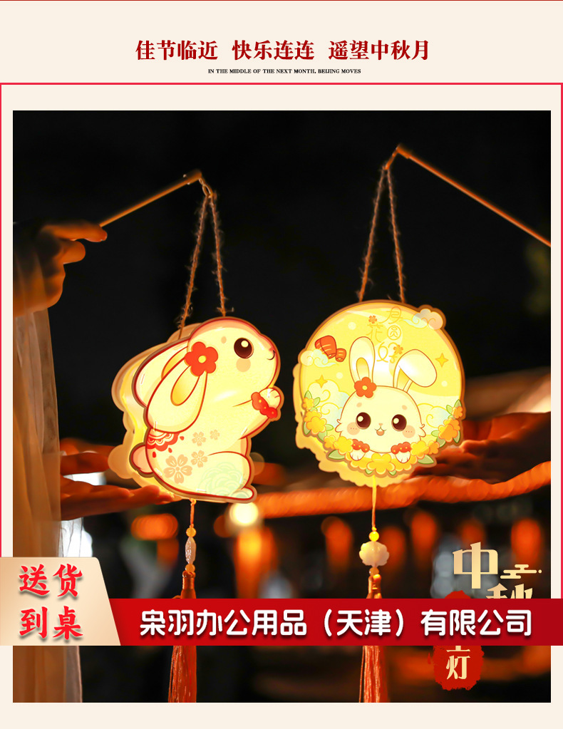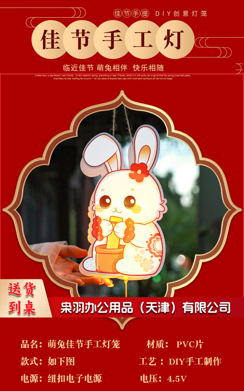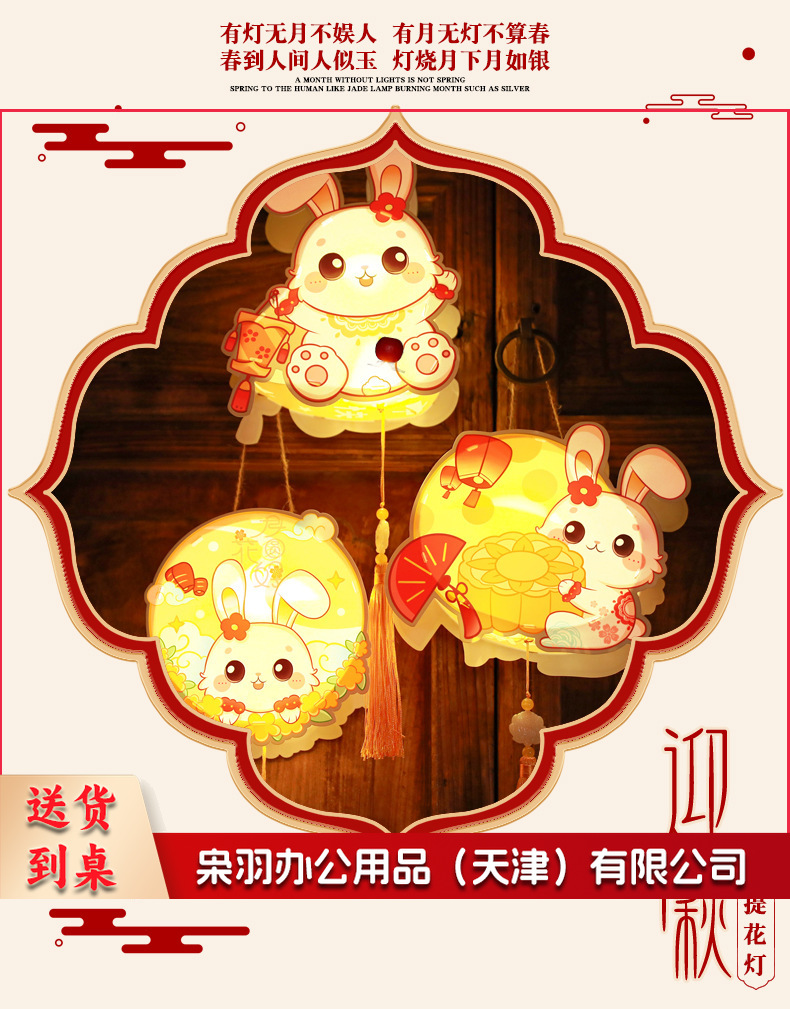 中秋节躺躺兔花环兔灯笼 卡通发光兔子pvc手提花灯 儿童手工灯diy材料 古风灯