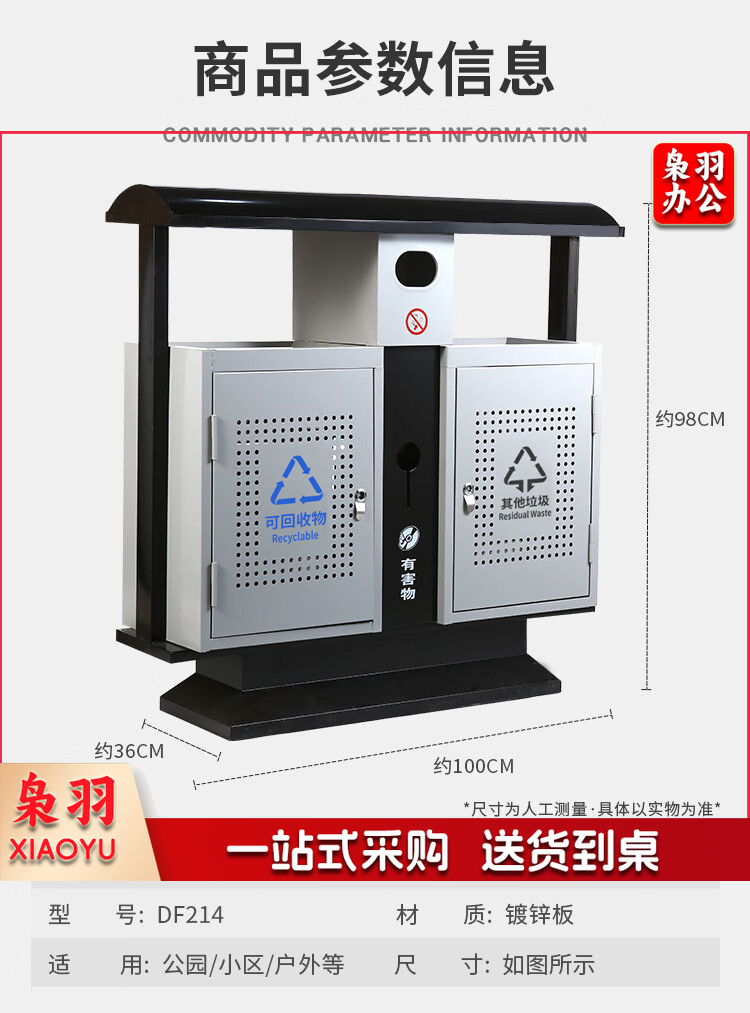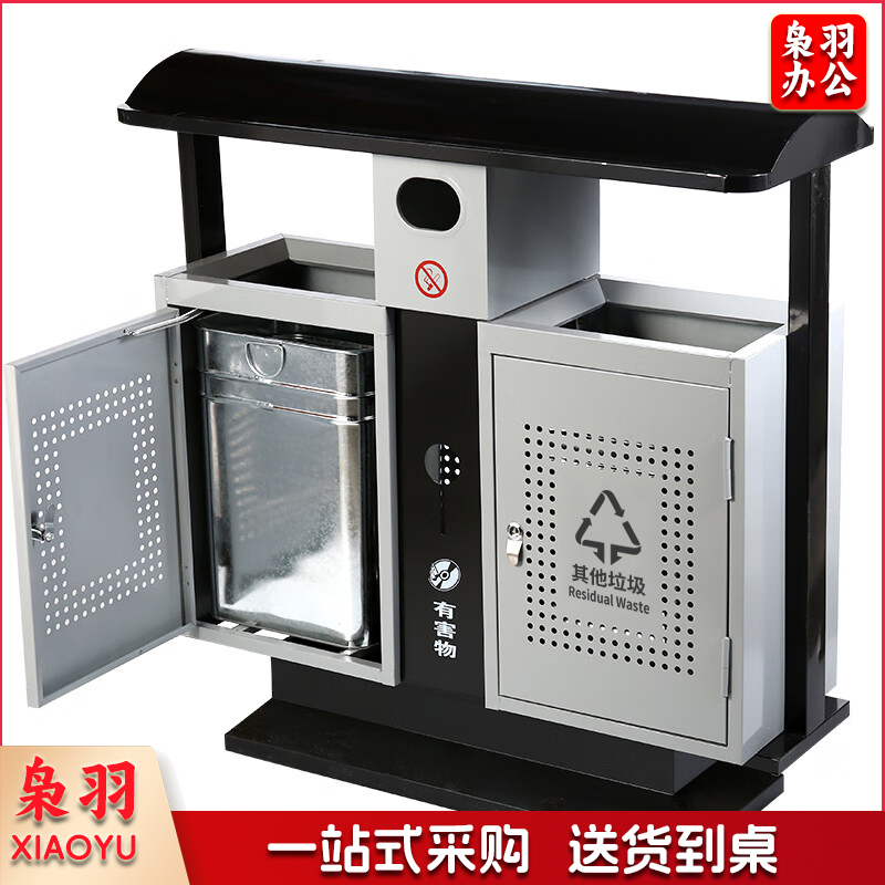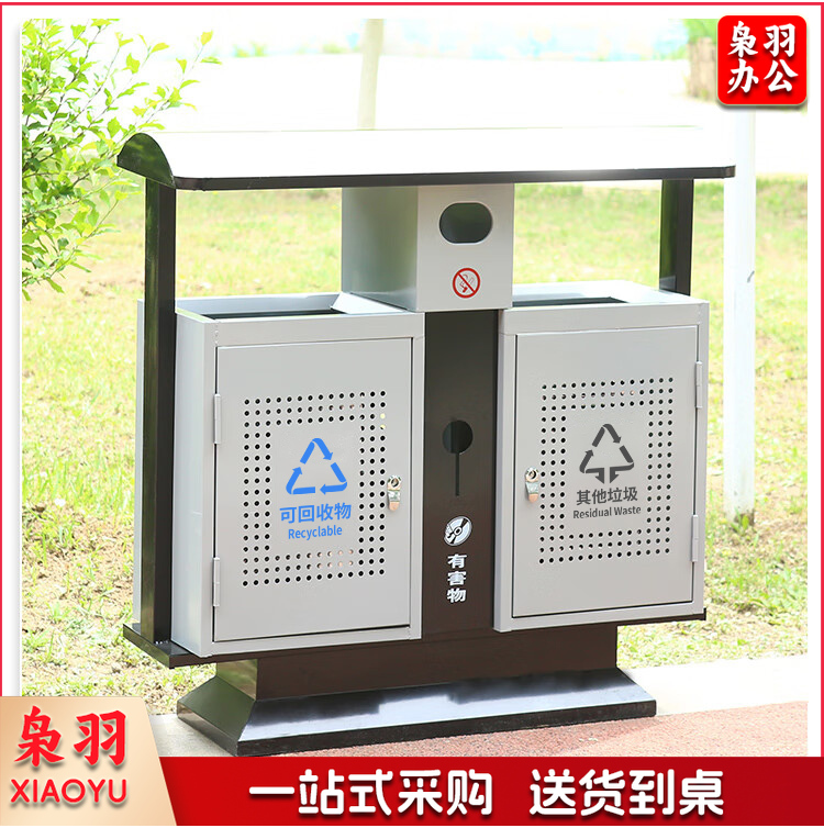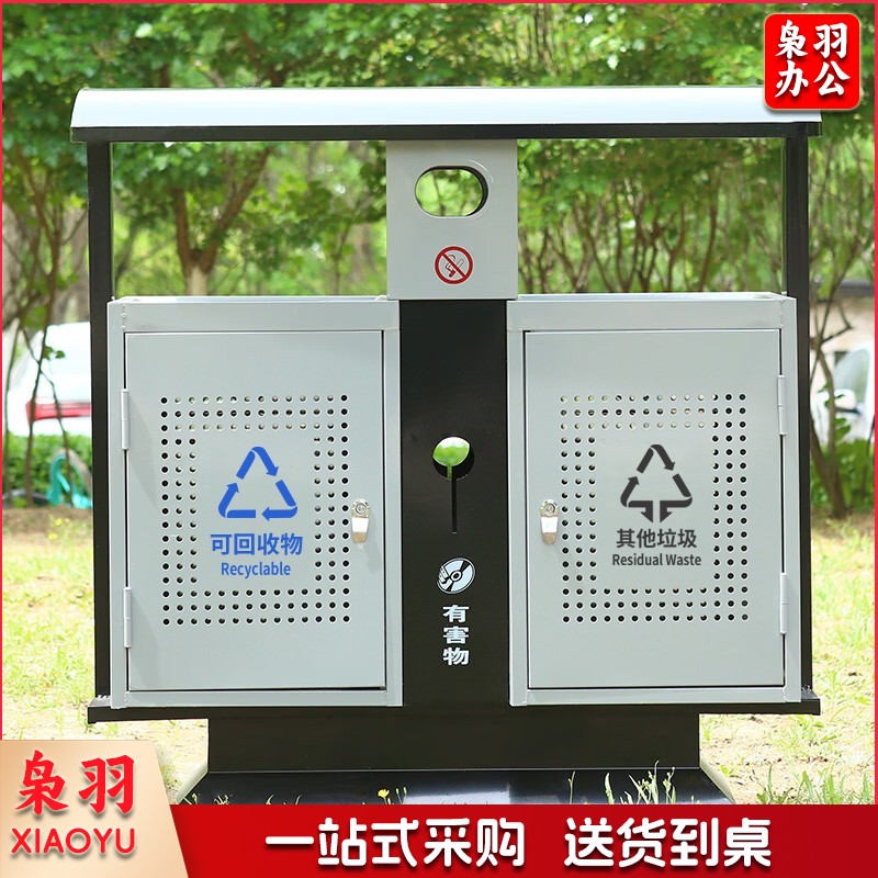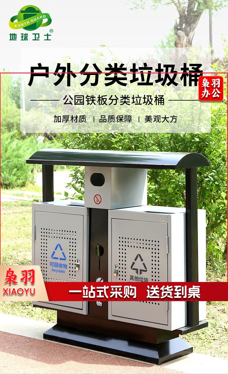 地球卫士 新国标两公园铁板分类镀锌板户外垃圾桶 市政环卫镀锌板果皮箱大号物业分类环保公园景区街道小区连体垃圾桶