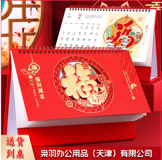 红色台历2025年蛇年月历计划本式大格子日历桌面摆件订制大号喜庆日历礼品定制企业广告logo 福到万家