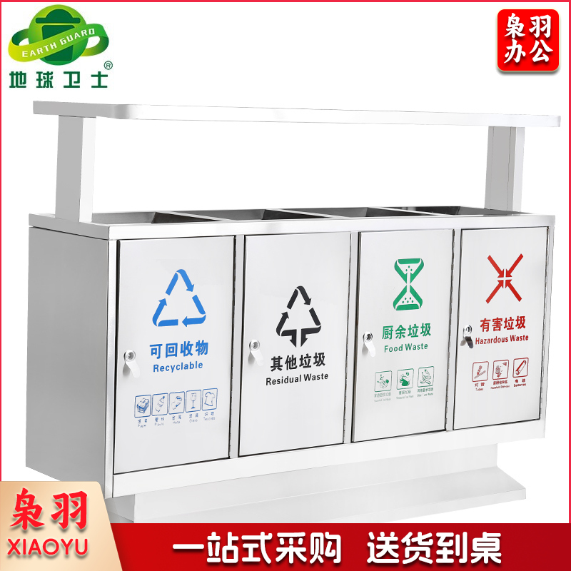 地球卫士 新国标四分类A4不锈钢户外垃圾桶 市政环卫不锈钢果皮箱大号物业分类环保公园景区街道小区连体垃圾桶
