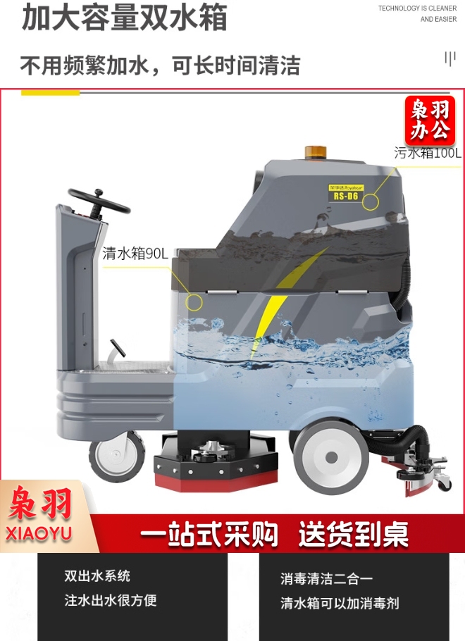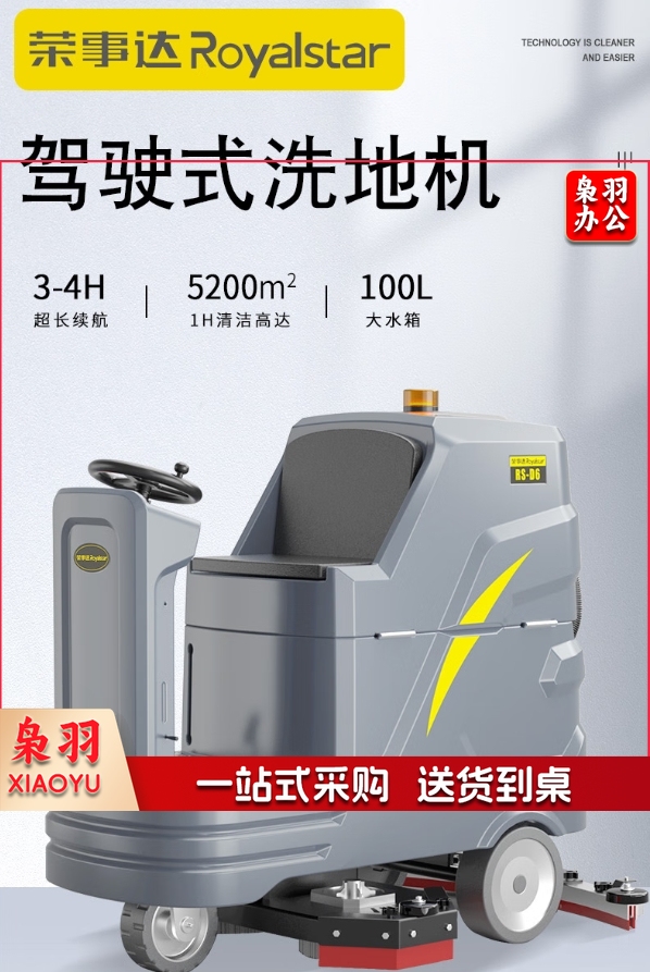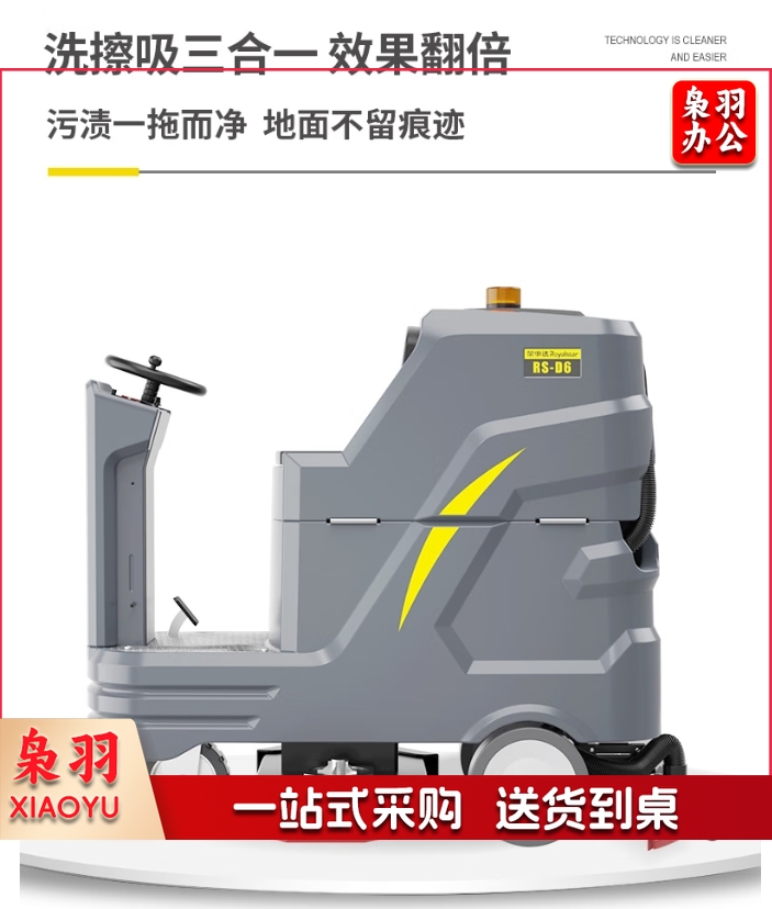 荣事达驾驶式工业洗地机商用 中大型自动洗拖一体清洁车 商场工厂车间物业仓库环卫超市拖地机清洗机D6锂电