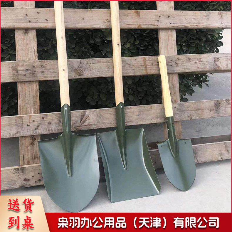 工兵铲抗洪救援防汛碳钢锹木柄铁锹雪铲 63CM小军锹-铁锹(尖头)
