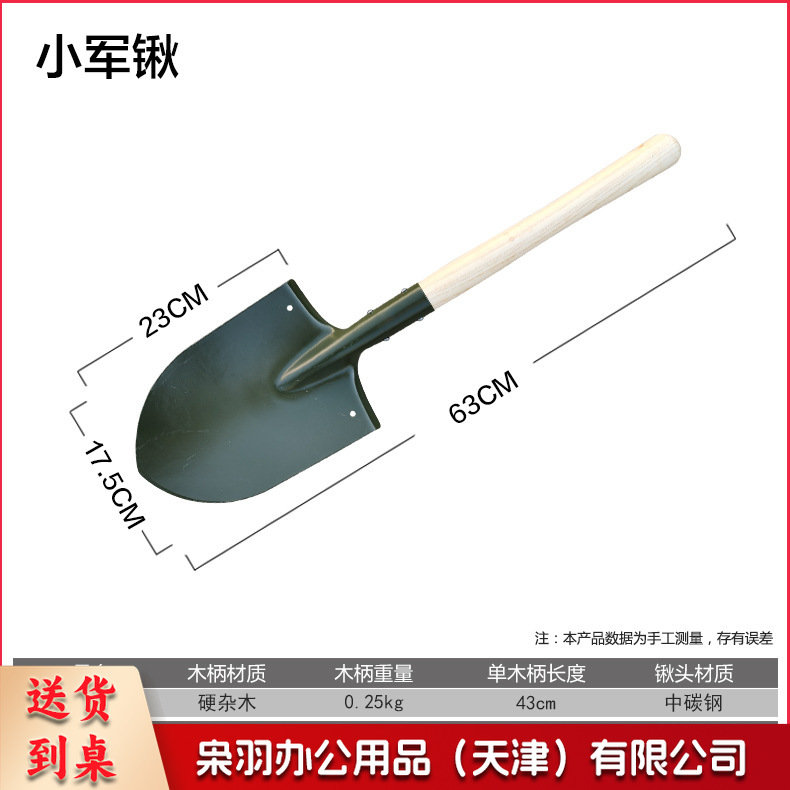工兵铲抗洪救援防汛碳钢锹木柄铁锹雪铲 63CM小军锹-铁锹(尖头)