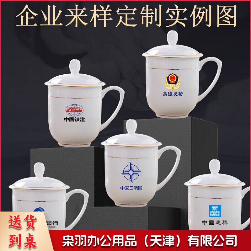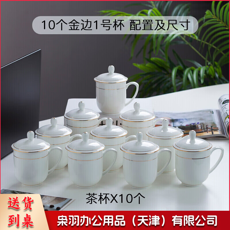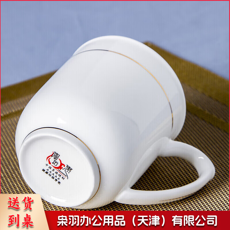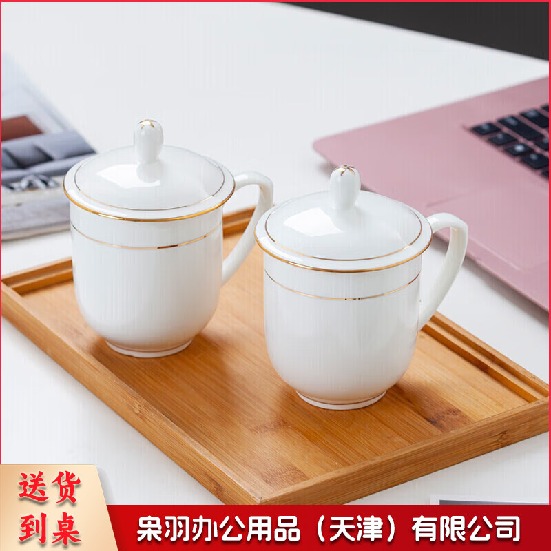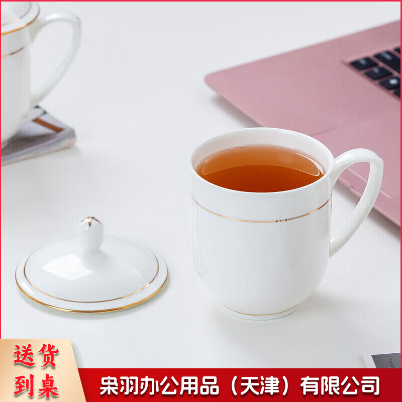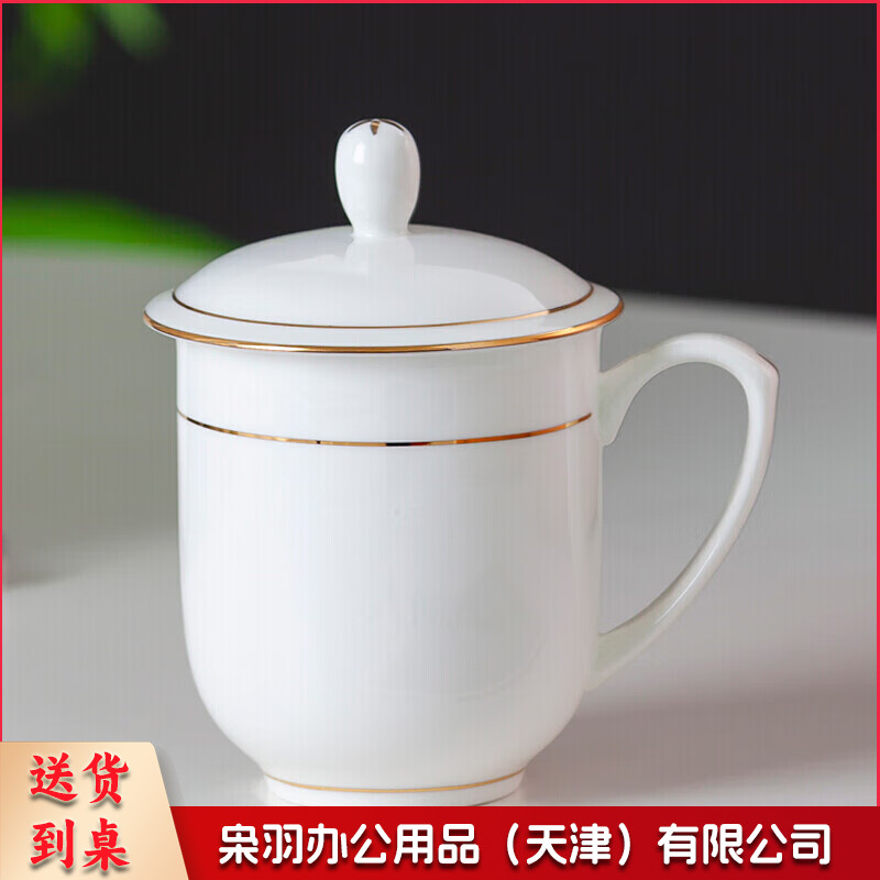 茶杯 骨瓷办公杯会议杯陶瓷盖杯开会杯子商务会议办公水杯带盖 单只装