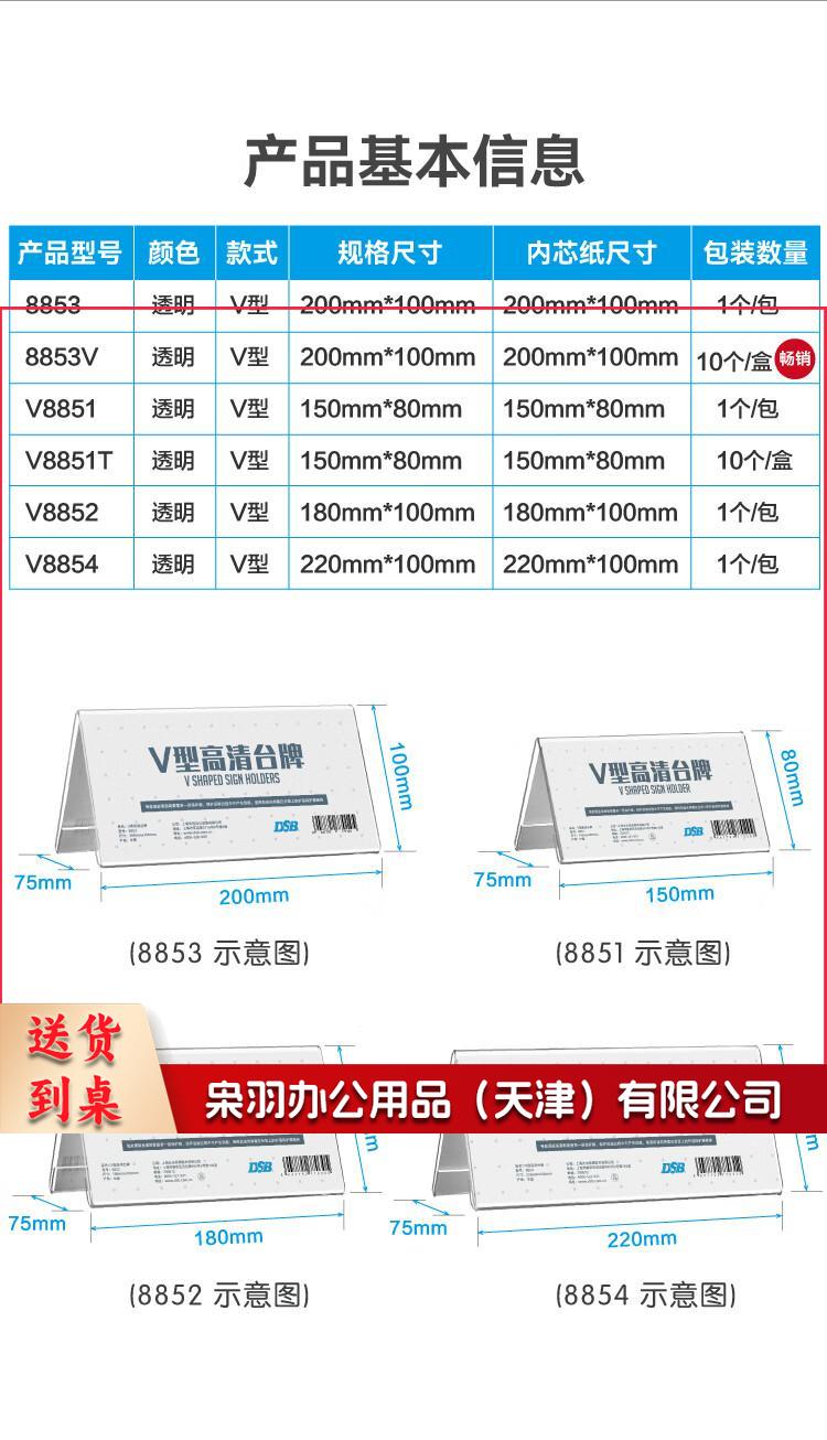 亚克力 台卡 桌牌 V型 双面 台卡台签会议牌桌签 200mm*100mm