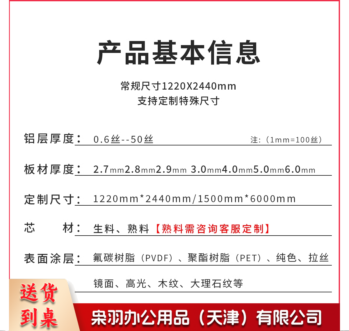 铝塑板 1220*2440*4mm 下单备注颜色