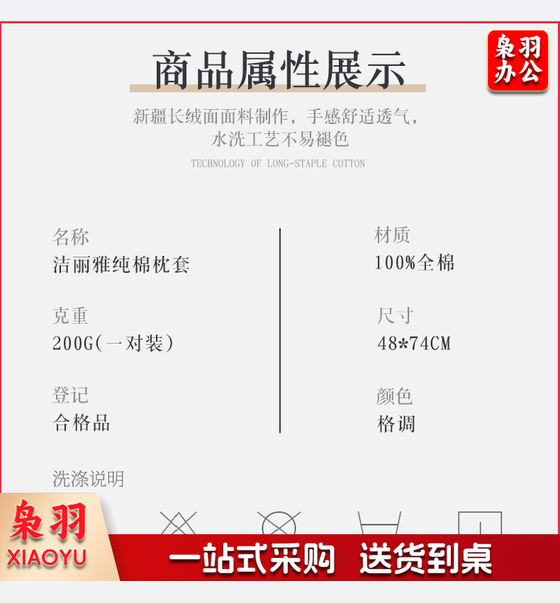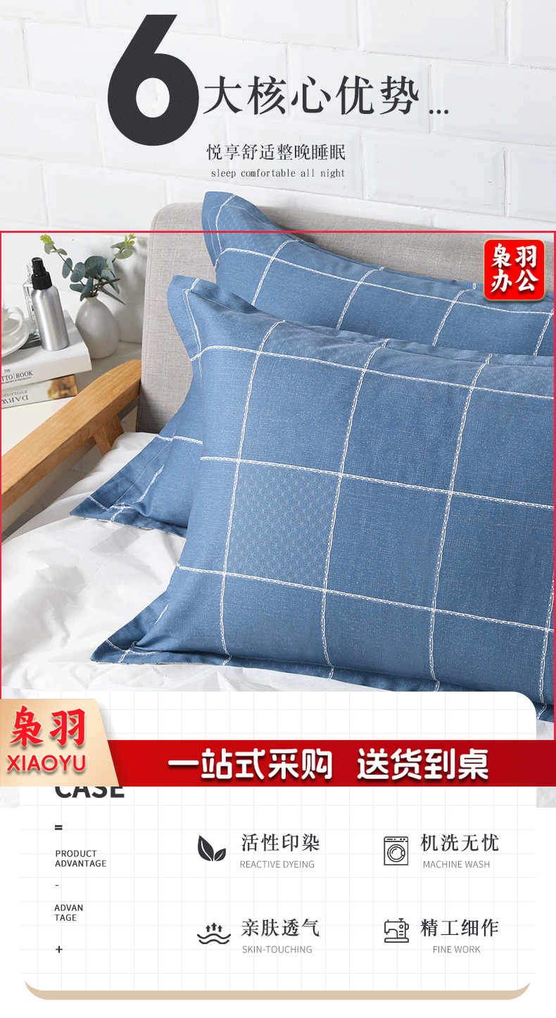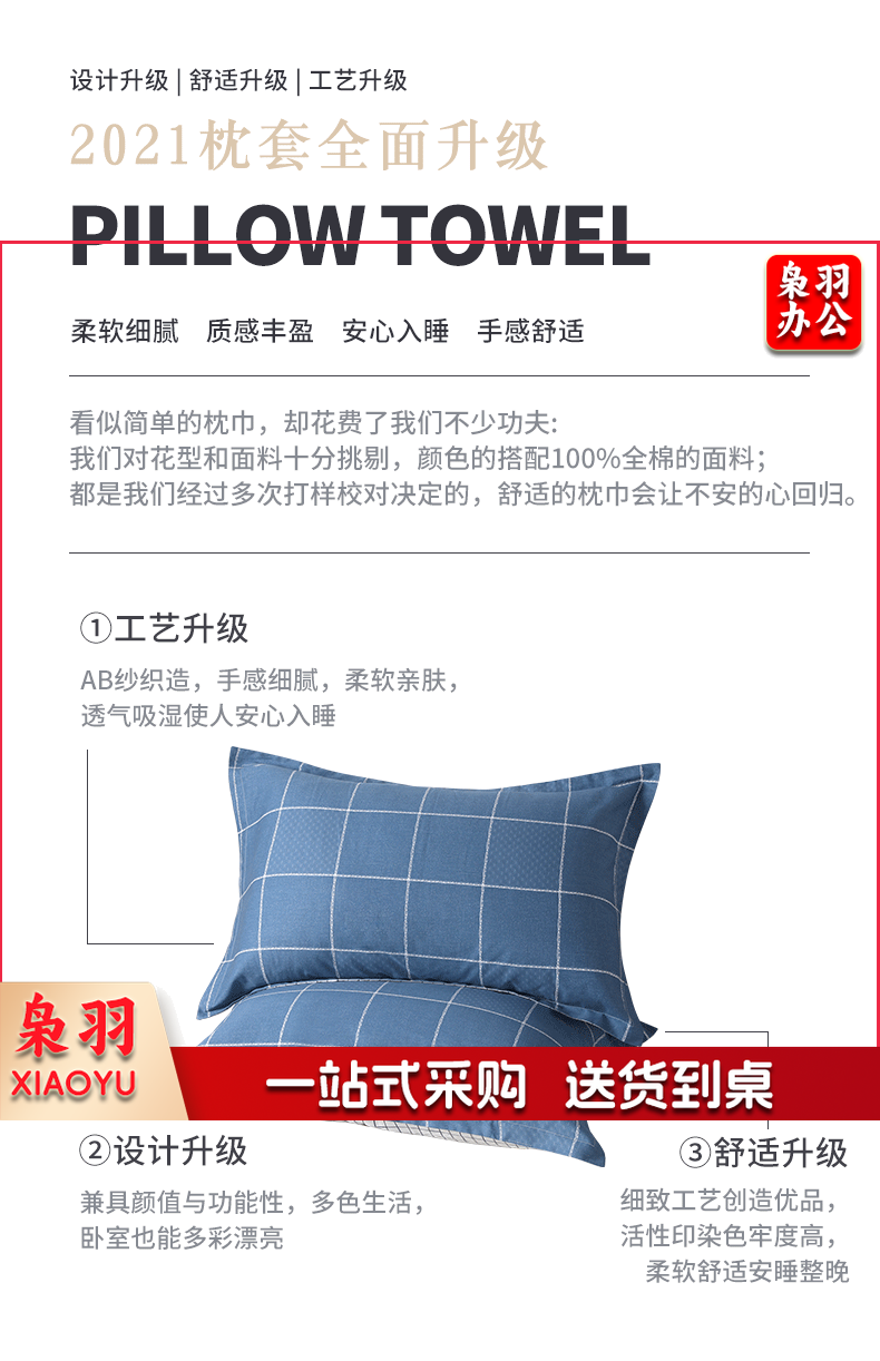 洁丽雅(Grace)枕套全棉一对装枕头套单人用枕芯套成人大号枕套家用 一对装48*74cm