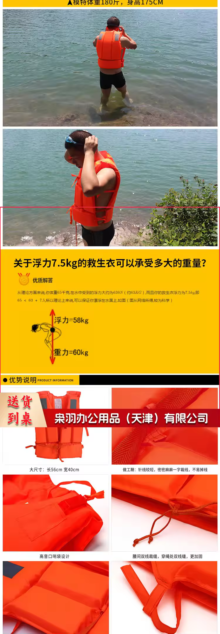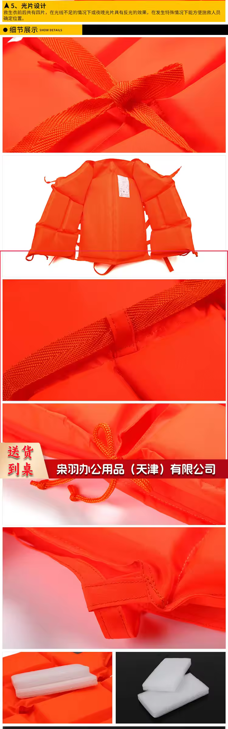 成人救生衣浮力背心户外钓鱼马甲游泳漂流带口哨反光条加厚绑带_橙色_均码