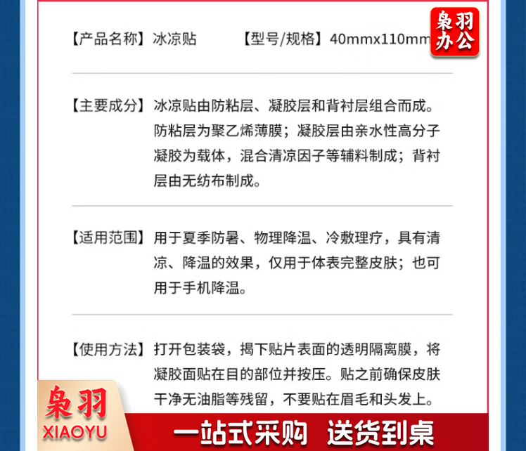 海氏海诺 冰凉贴降温贴 用于夏季防暑 物理降温 40*110mm 10贴装