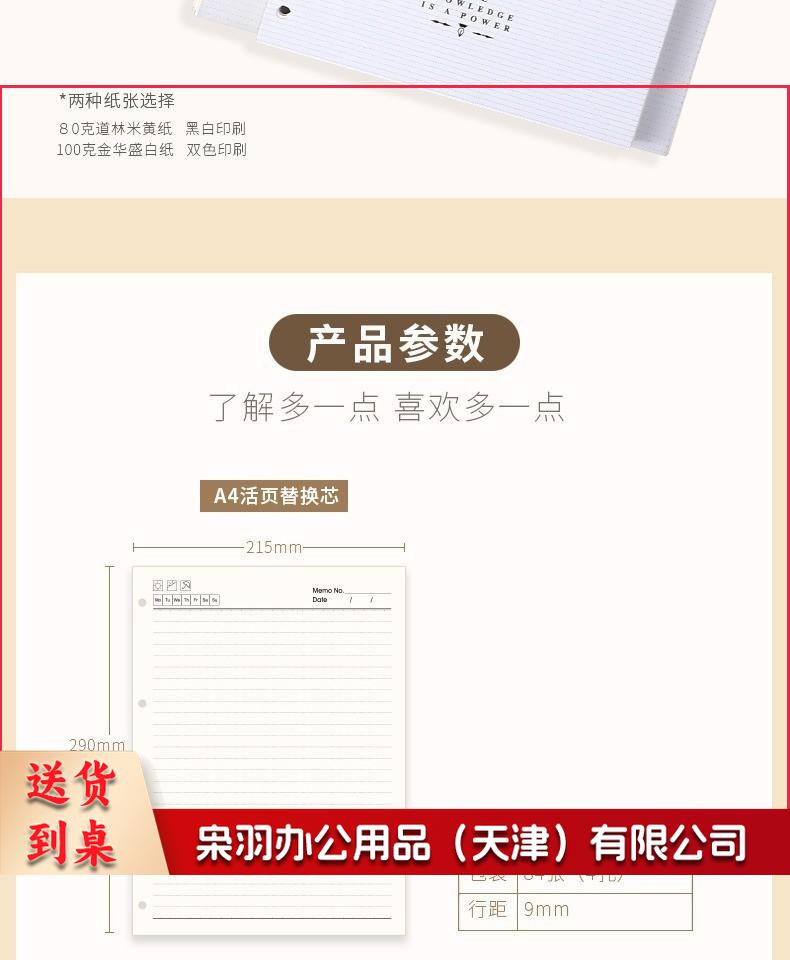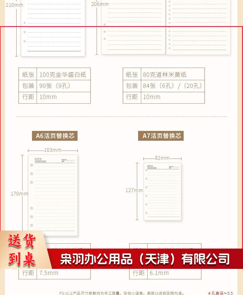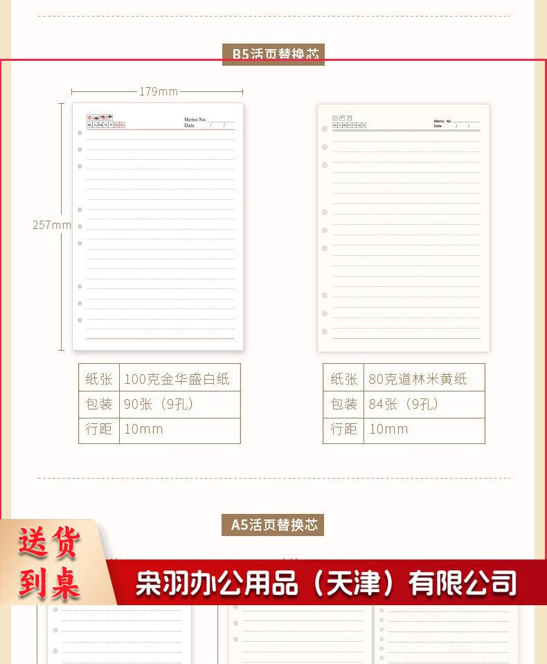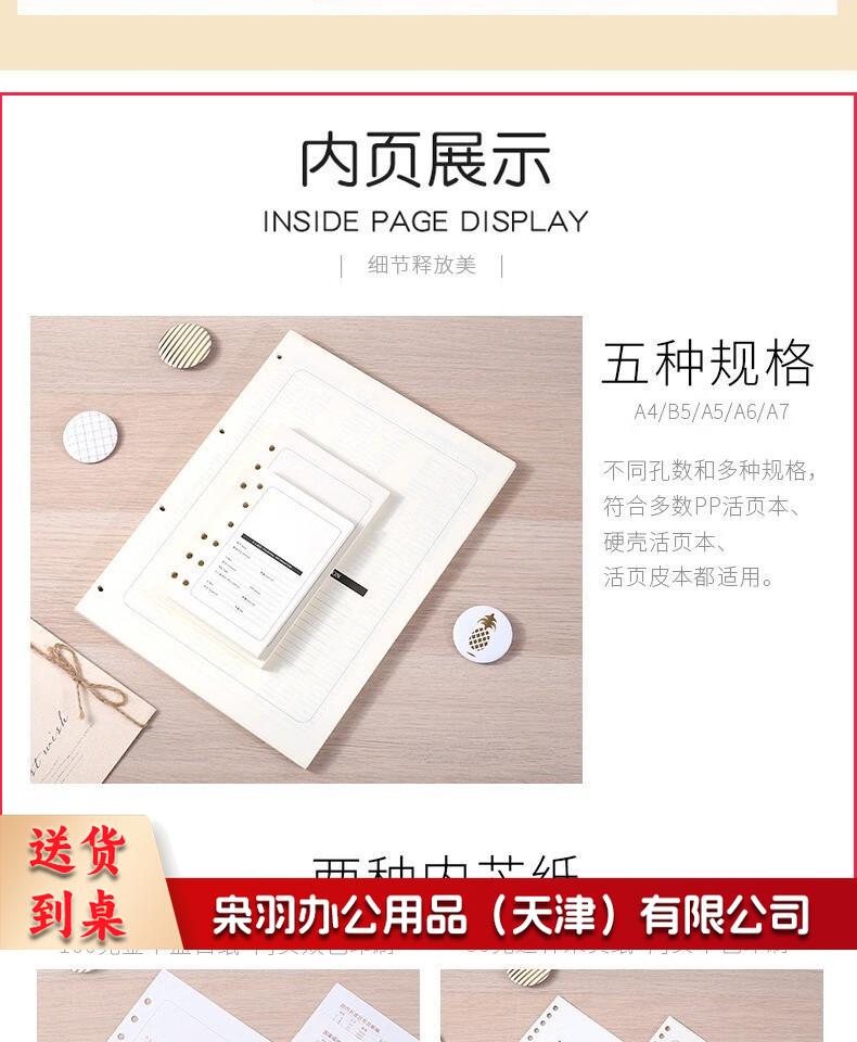 活页本替换芯A4B5A5A6A7替换内页9孔26孔活页本芯6孔20孔替换芯活页纸可拆卸备用内芯 A5(6孔80克纸)84张