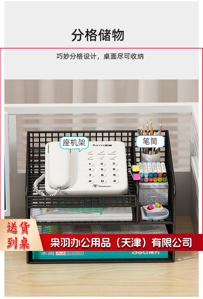 座机电话支架 电话座机支架固定电话机置物架工位办公桌面座机架 黑中号多区分类一体整装