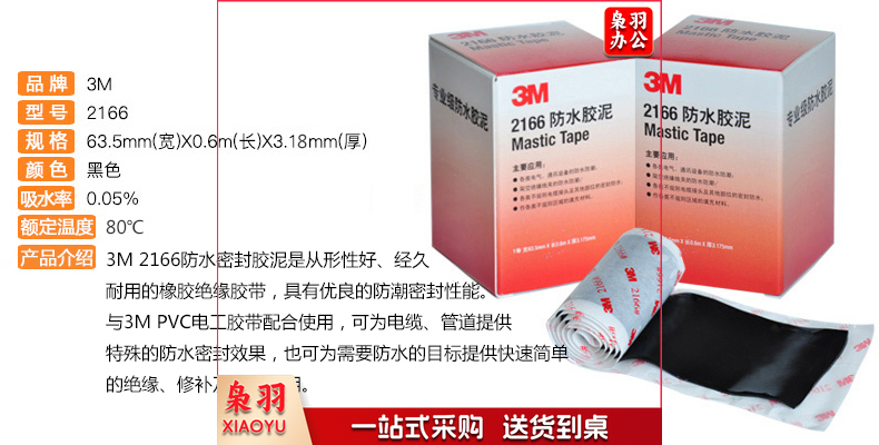 3M 电工胶带,2166# 橡胶绝缘胶带 63.5mm×0.6m