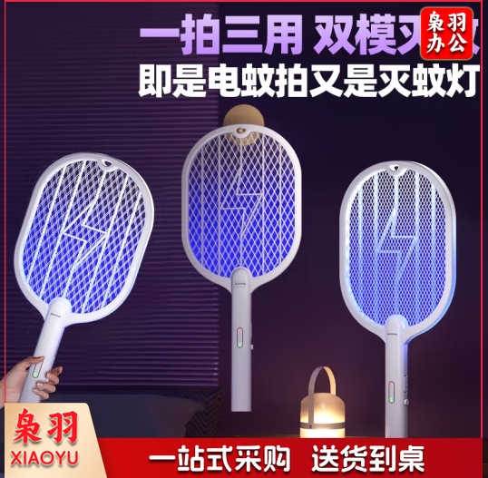 电蚊拍灭蚊灯两用锂电池充电式紫光诱蚊带底座灭蚊神器苍蝇拍