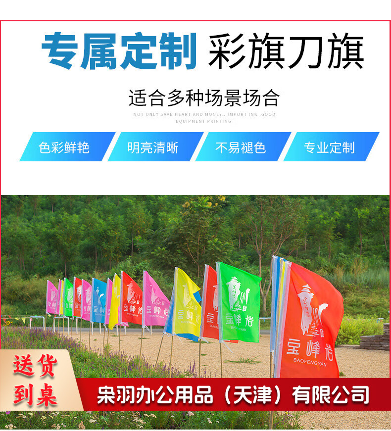 刀旗彩旗 装饰户外五彩飘旗广告旗子 刀旗 50*70配2米竹竿