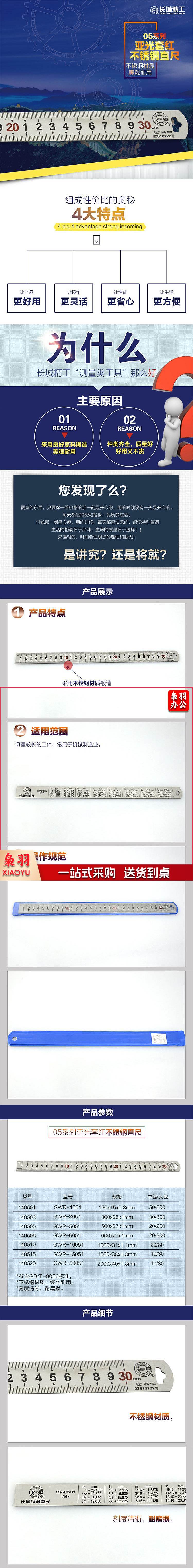 长城精工14050305系列亚光套红不锈钢直尺300*25*1mm(把)