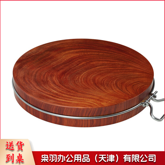 正宗红铁木砧板 菜墩圆形刀板 红铁木钢圈款 46*5cm 货号:JC