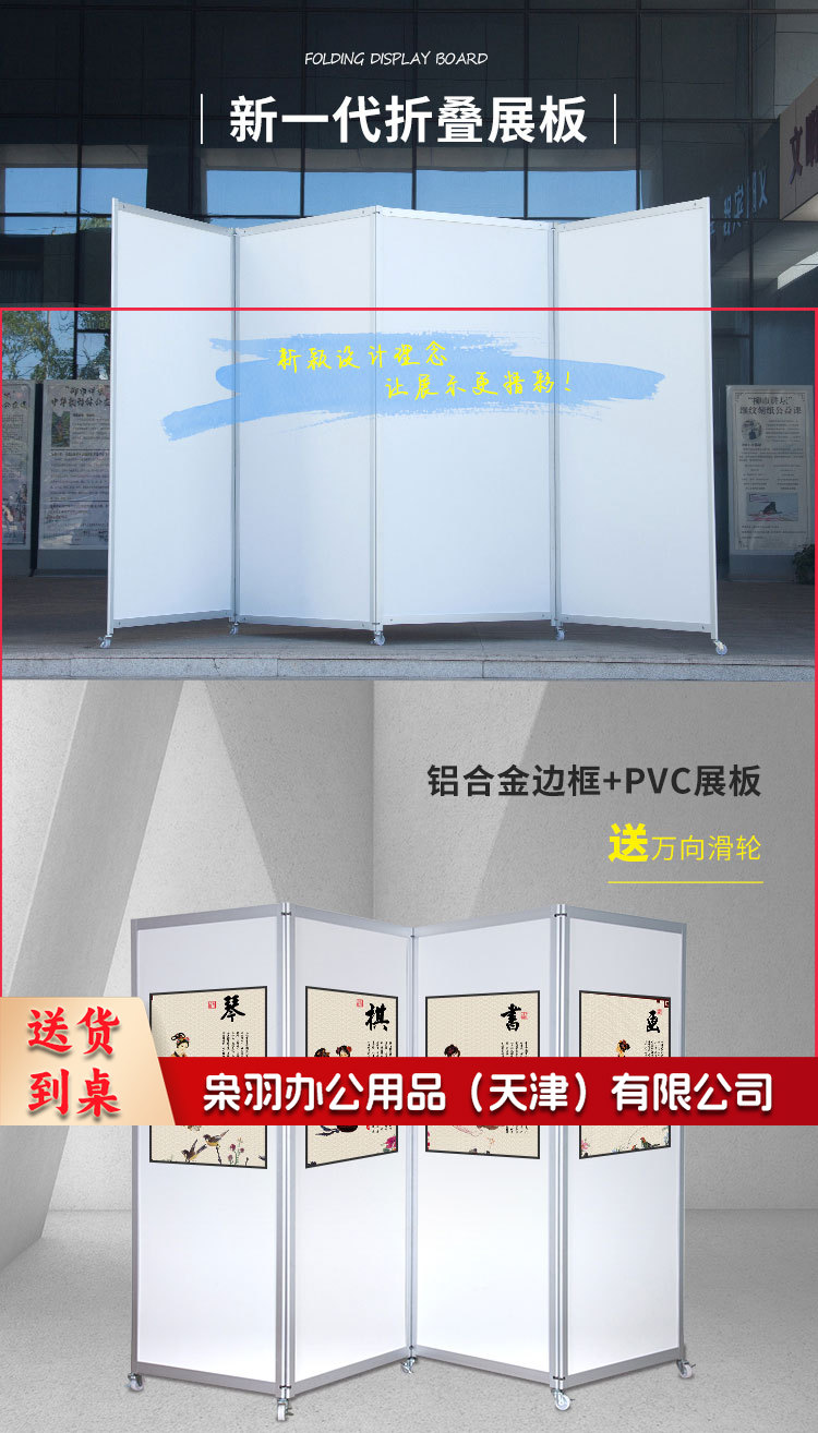 书画展版学校美术作品展板宣传屏风 移动展板书画展示架折叠展板1.2*2.2米