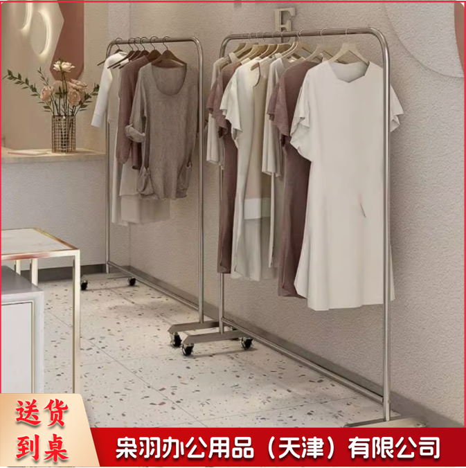 不锈钢服装展示架落地衣架带移动轮 长*高120cm*165cm