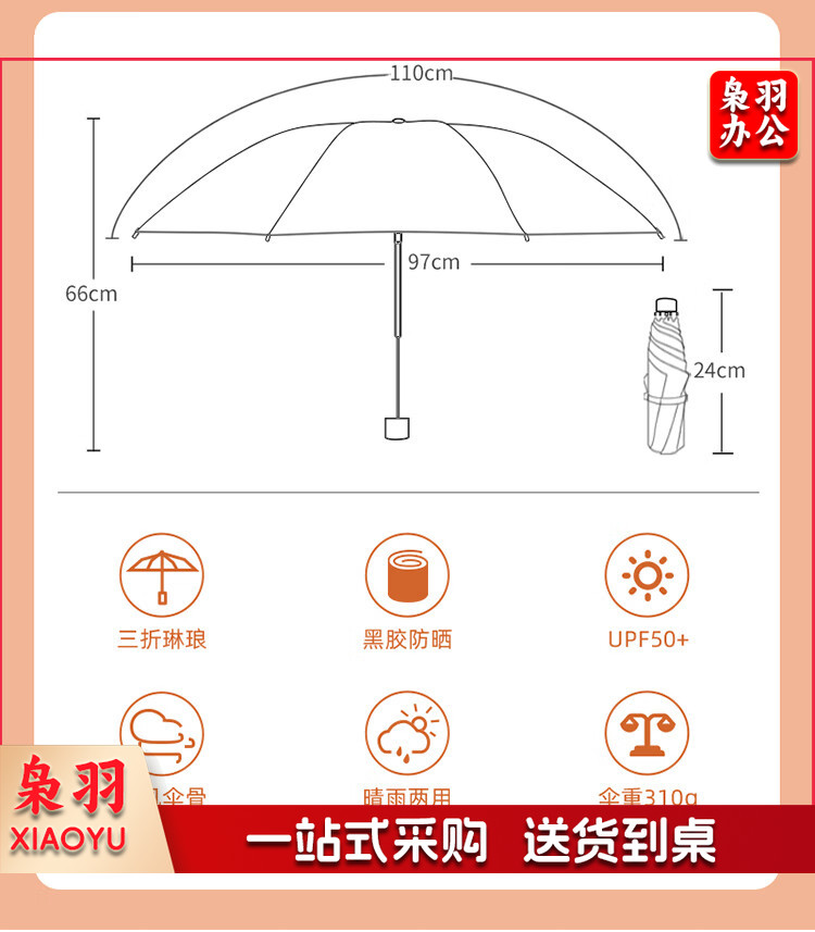 天堂伞 便携黑胶遮阳太阳伞防晒防紫外线三折叠雨伞女晴雨两用 30750EVIP三折琳琅 奶酪色