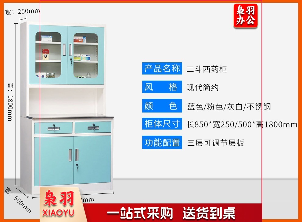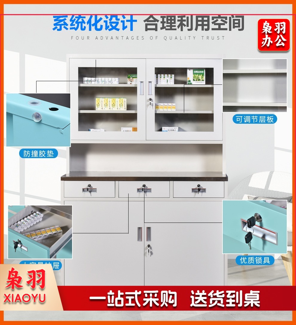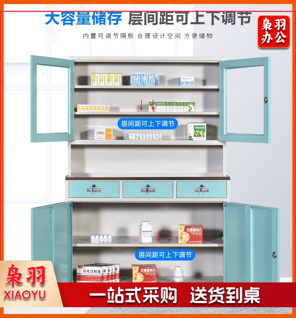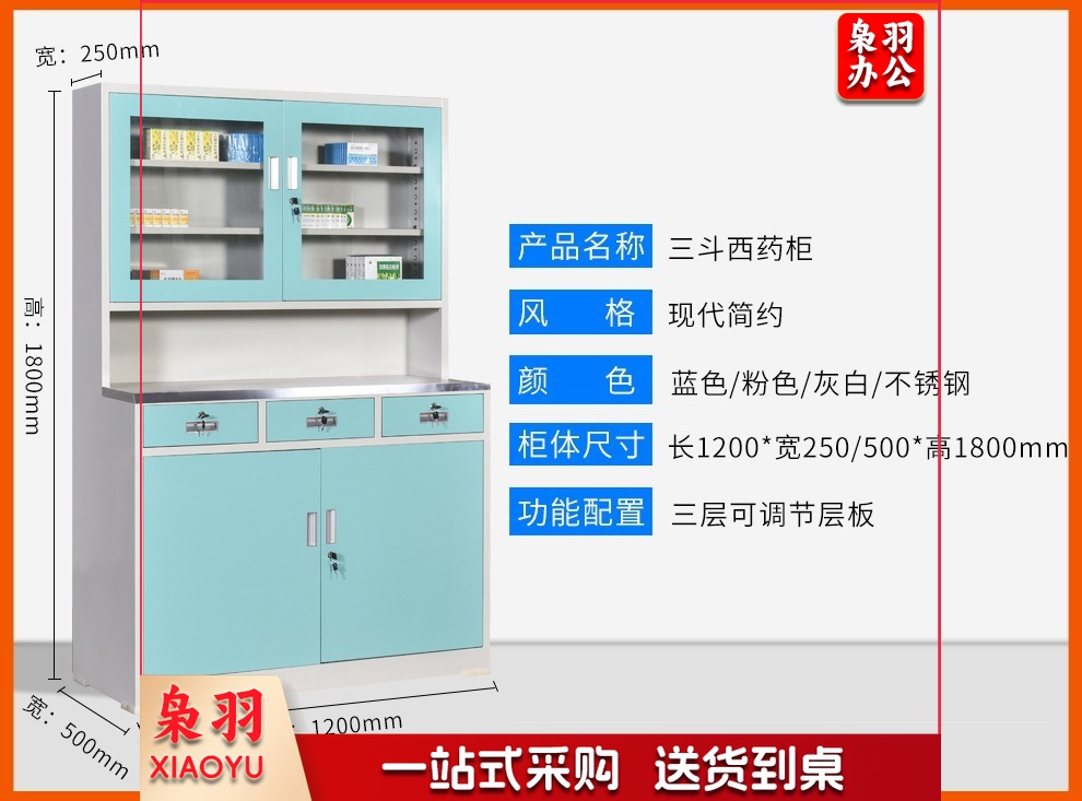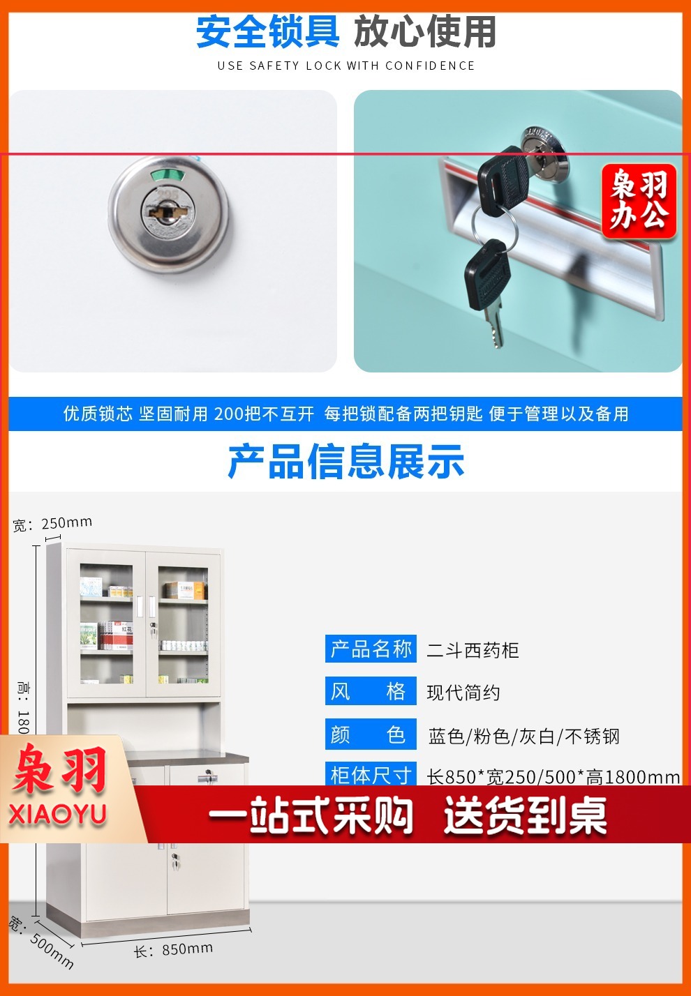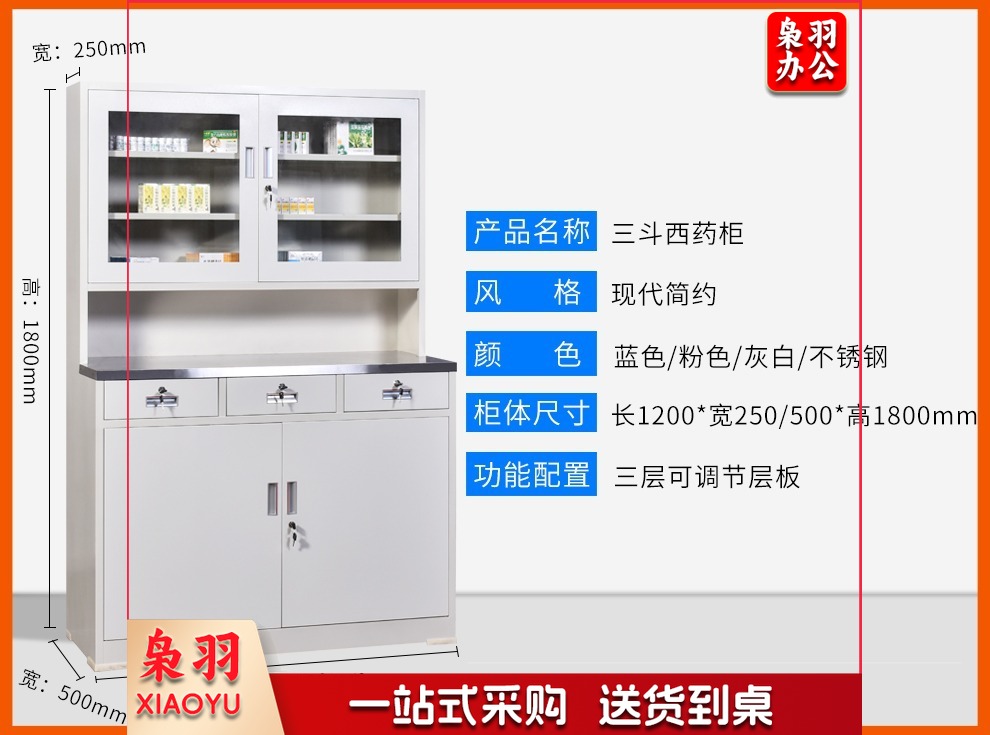西药柜药房配药柜诊所医务室柜柜医处置台操作台药品柜调剂柜牙科药 三斗西(灰白) 安全用仪器