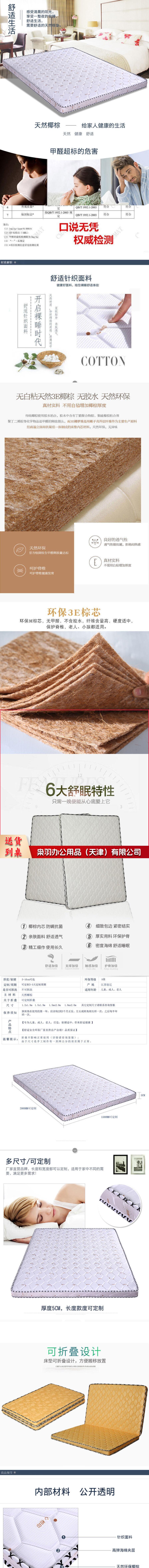 椰棕床垫偏硬单人床垫1900*940*60棕垫
