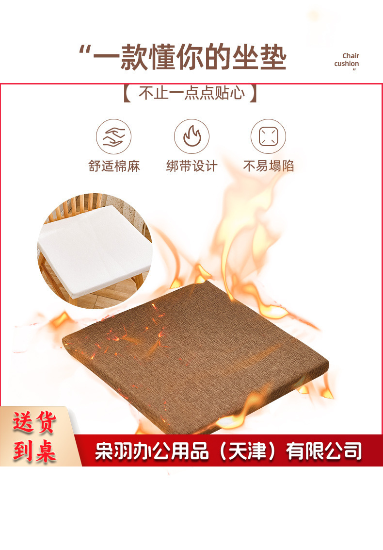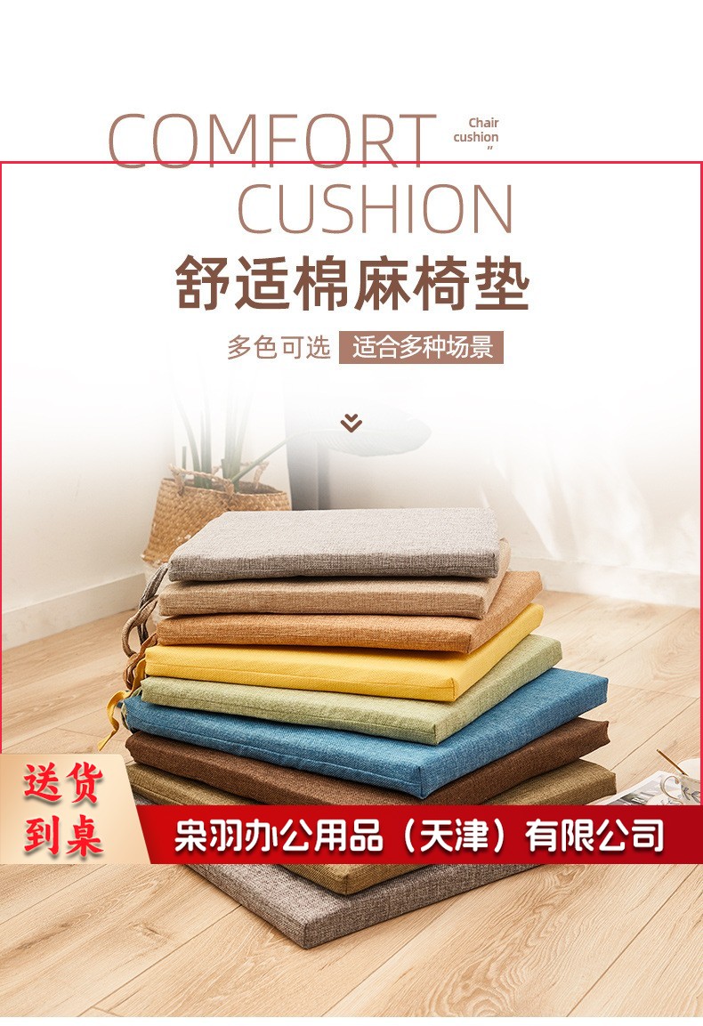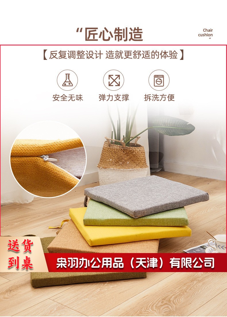 冬季坐垫办公室久坐屁垫棉麻椅垫垫子地上学生厚餐椅座垫40*40cm(4cm厚)