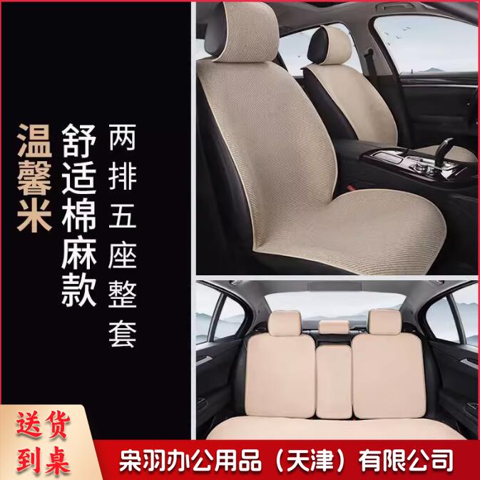 新款汽车坐垫四季通用粗麻款米色整套五座