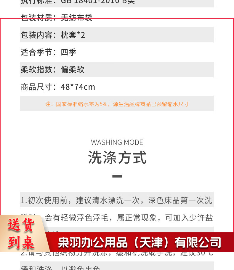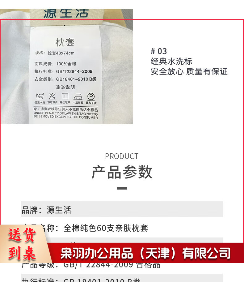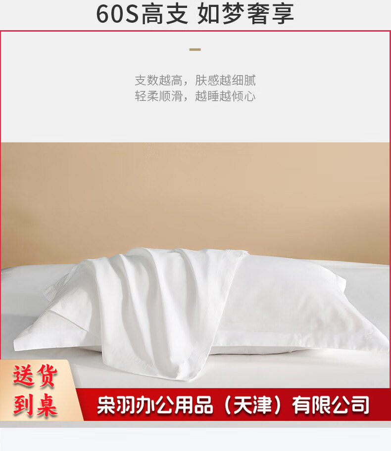 枕头套一对装 酒店60支纯棉枕套 纯色单人枕芯套 白色 48*74cm