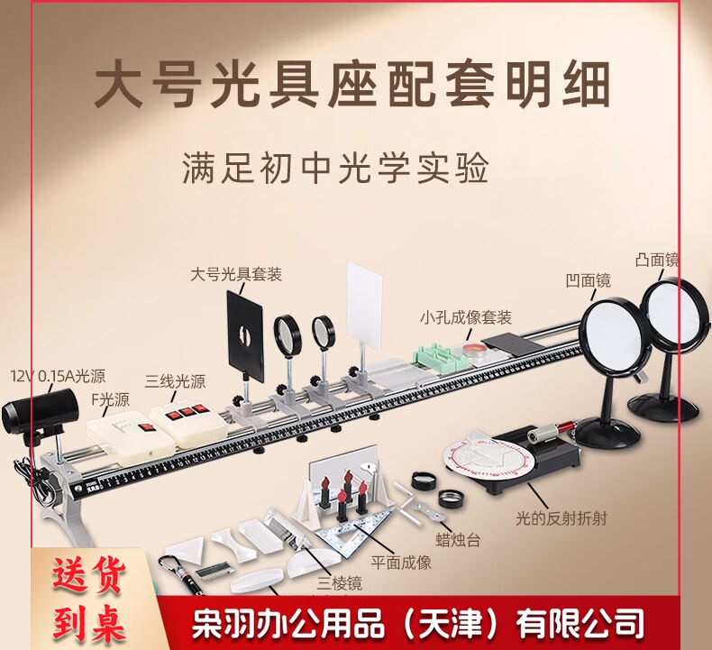初中物理光具座光学实验器材大号凹凸透镜学生用初二七年级光学实验教具演示成像规律科学套装全套教学仪器 物理全套