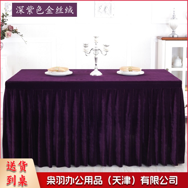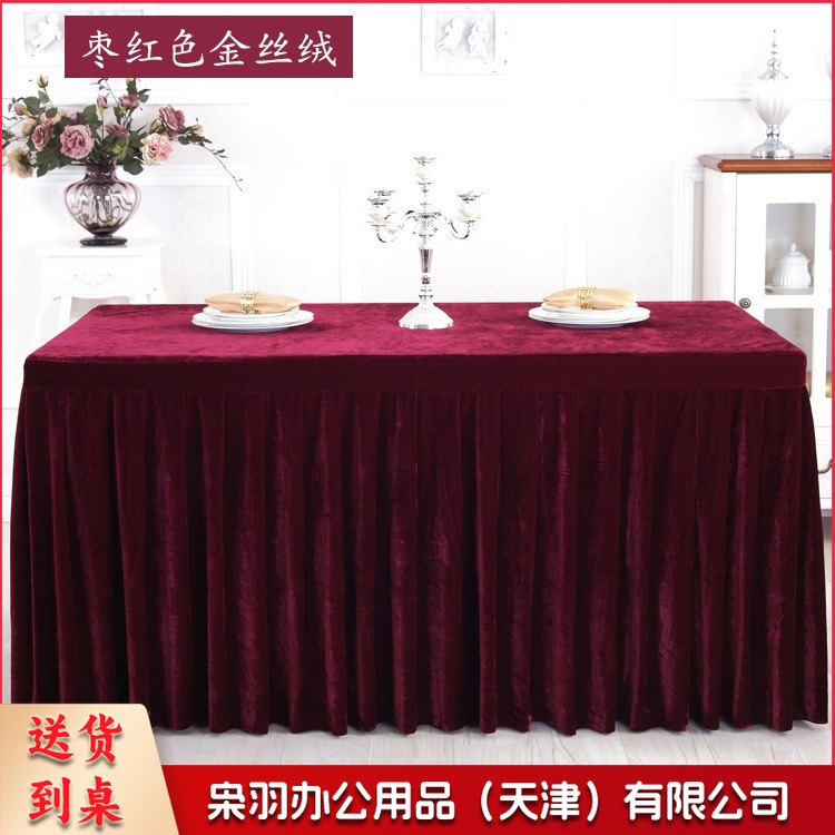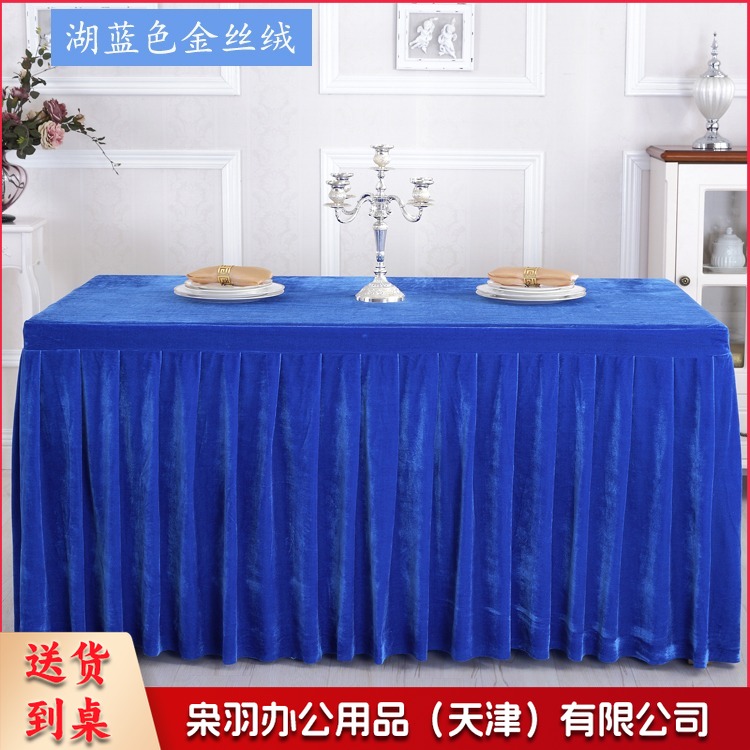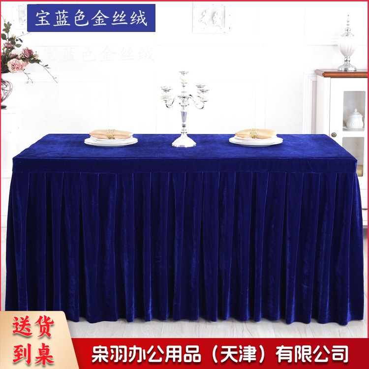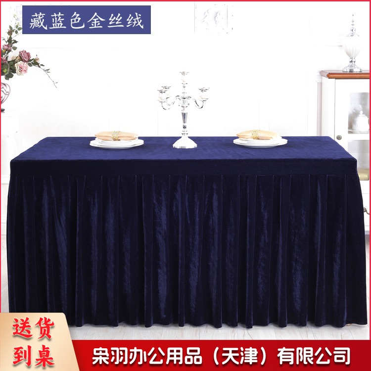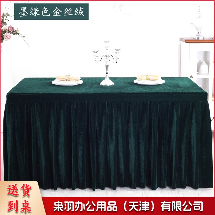 金丝绒会议桌布桌裙签到展示台布 墨绿色 ZB-522 刺绣套件