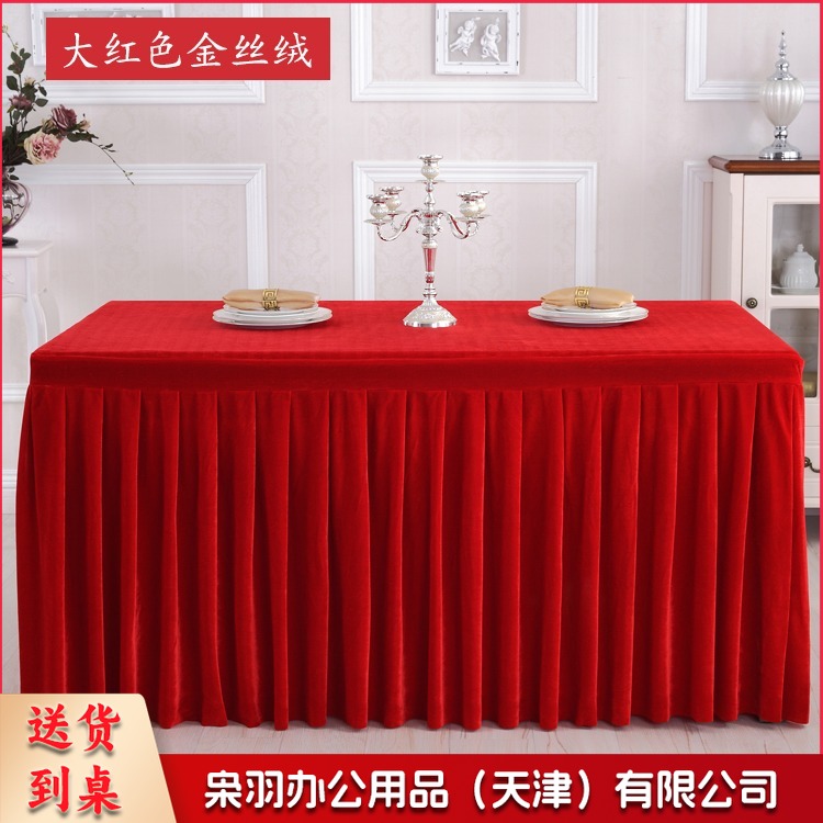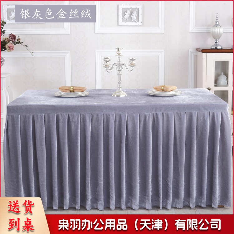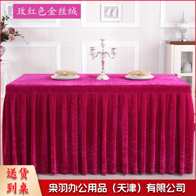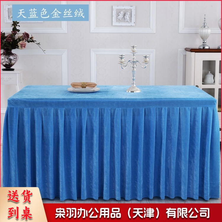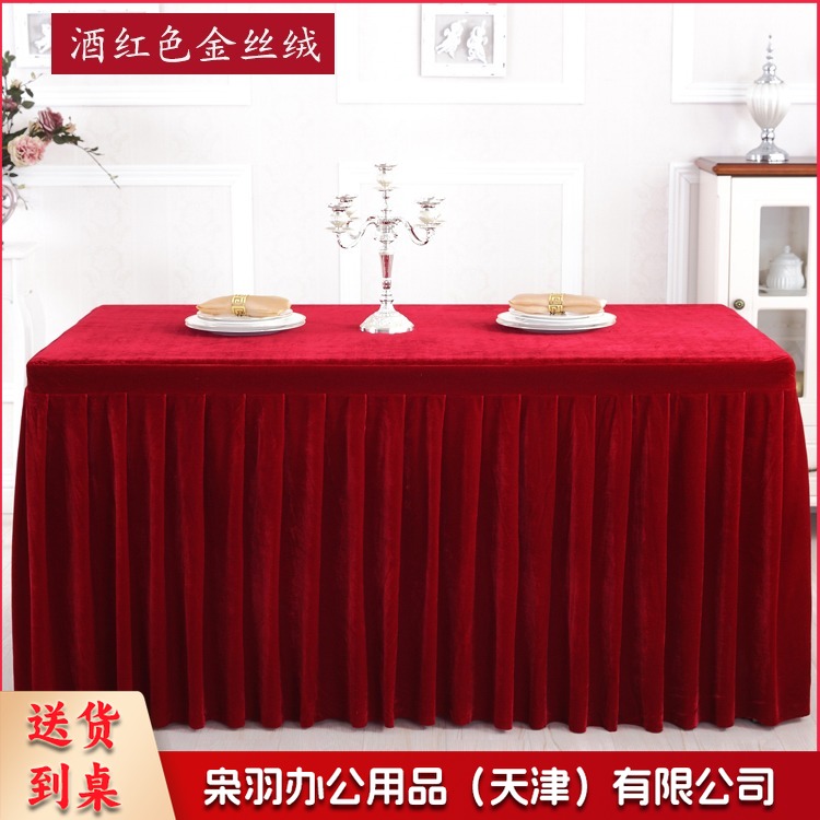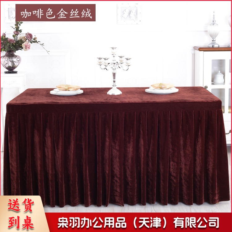 金丝绒会议桌布桌裙签到展示台布 墨绿色 ZB-522 刺绣套件