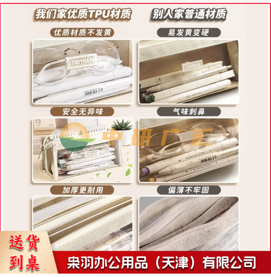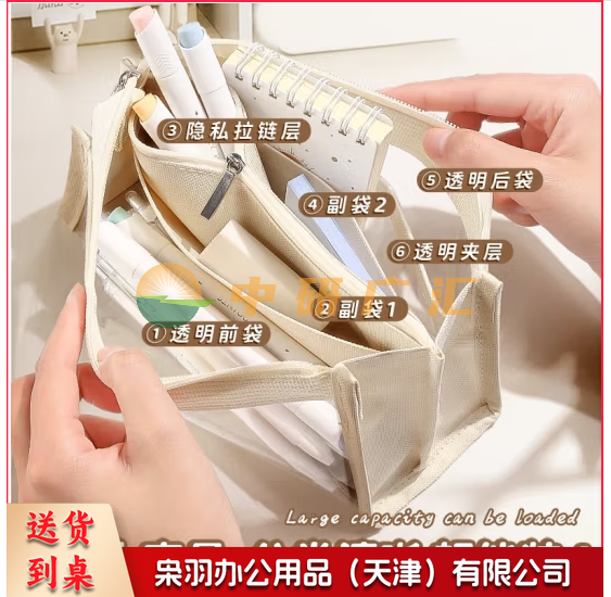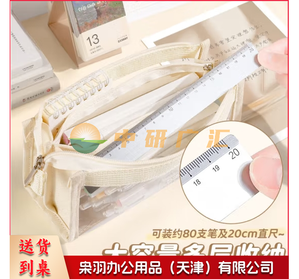 米白色6层透明笔袋 大容量ins高颜值女孩款网红高考文具盒中学生初中生女生版文具用品小学生铅笔盒