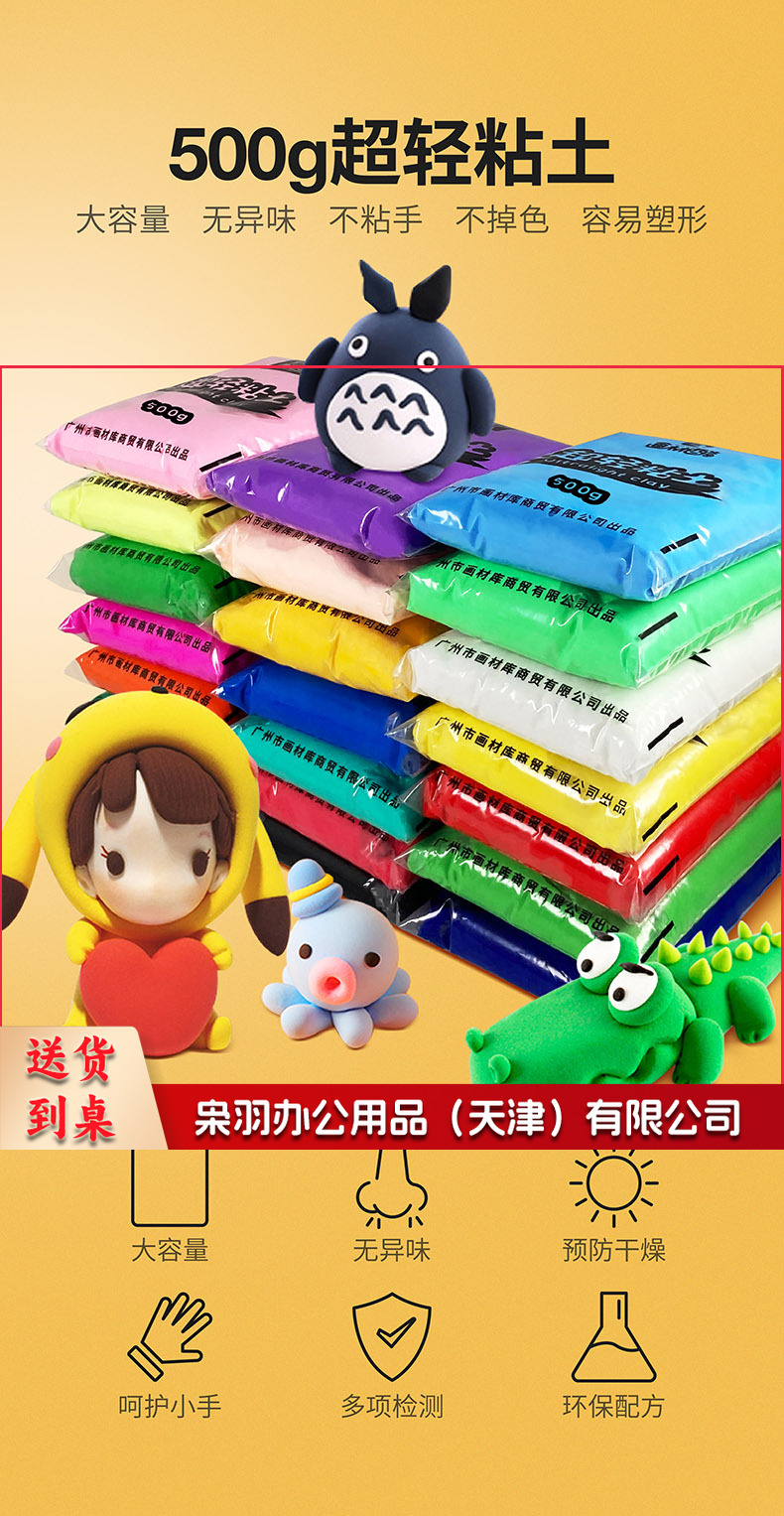 画材酷100克粘土儿童大包装白色黑色100g袋袋装24色轻粘土彩泥太空泥儿童手工制作幼儿园diy手工材料