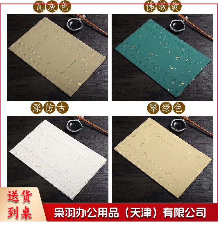复古蜡染笺对联纸(佛教黄)10张/包 宣纸七言文房小对联楹联半生半熟毛笔书法创作专用宣纸对联纸