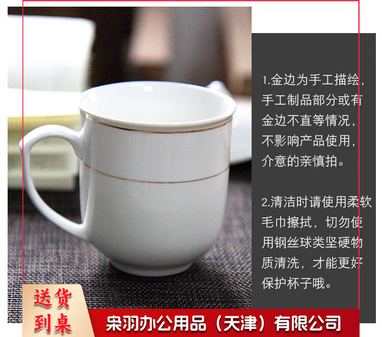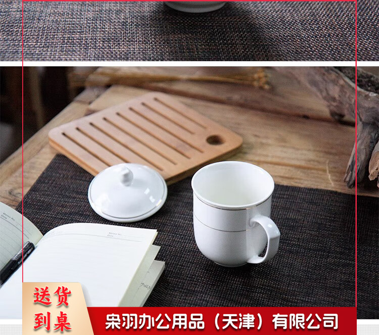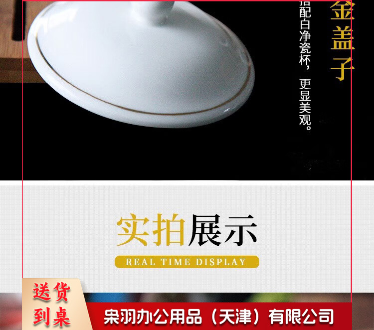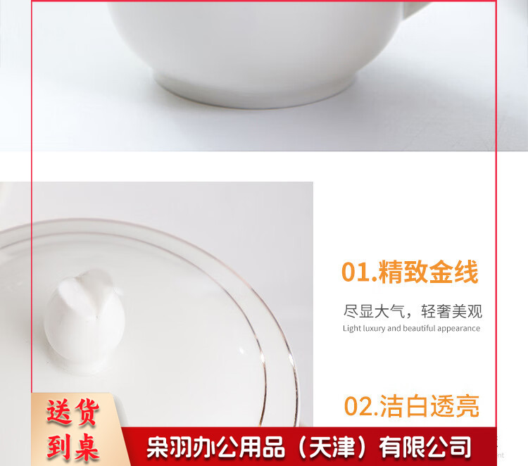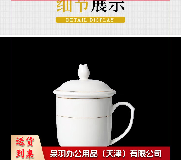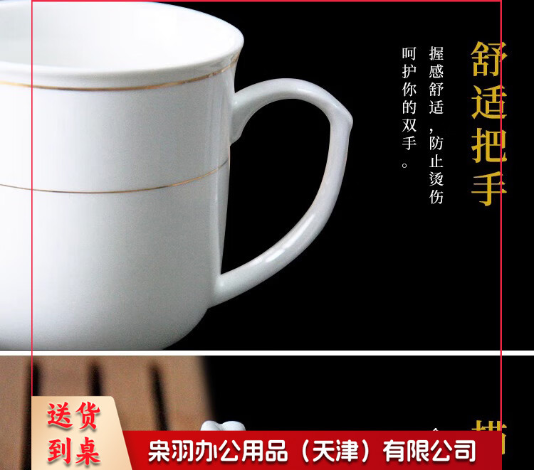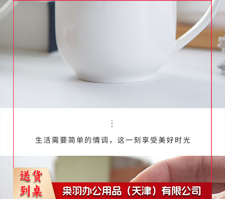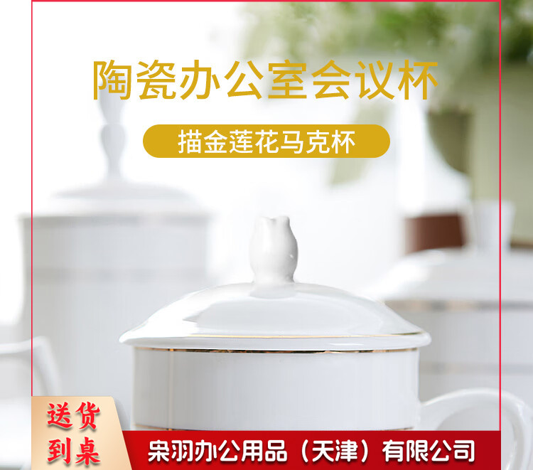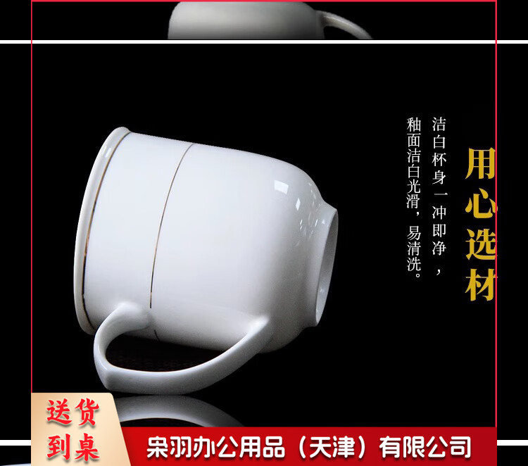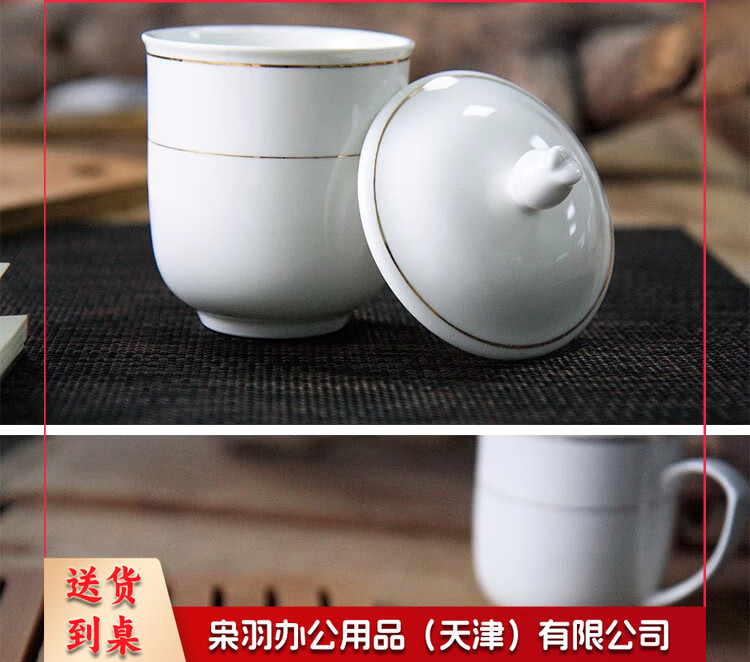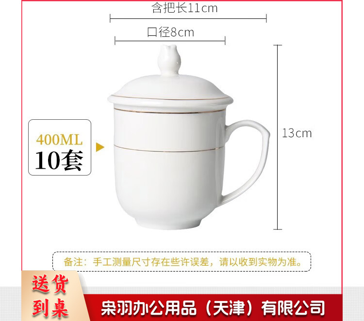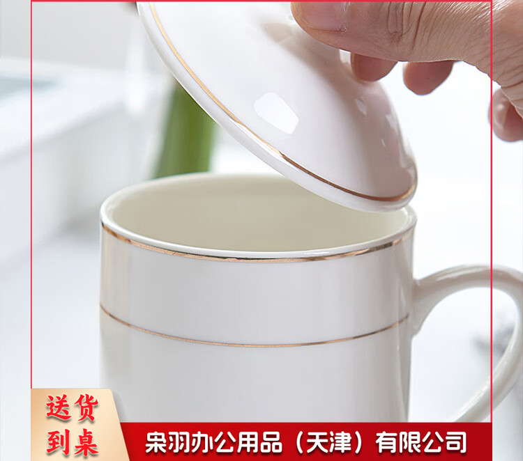 茶杯陶瓷杯办公杯带盖 商务会议水杯 TH7274 白色 400ml 10只装