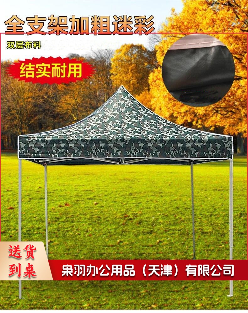 户外遮阳棚 四角帐篷 迷彩遮阳伞遮雨棚摆摊遮雨棚广告伸缩车棚 3*3米【双层布面+加粗支架】