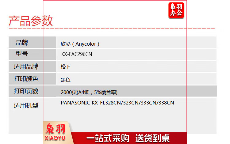 欣彩/Anycolor KX-FAC296CN 粉盒 黑色 (适用用松下KX-FL323CN) 单位:支