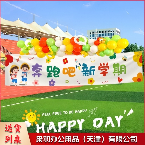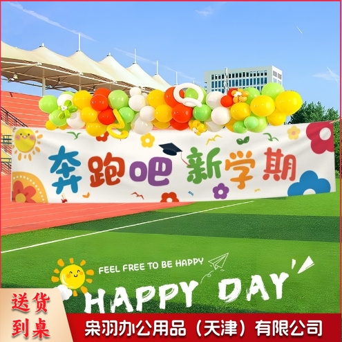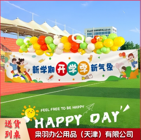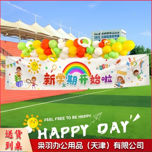 幼儿园开学季挂布教室黑板开学典礼装饰横幅背景布仪式感场景布置四角打孔(四角打孔200cmx40cm)